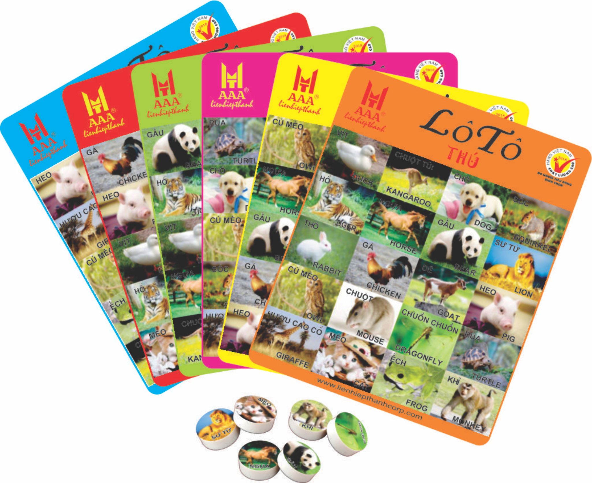 - Cờ Lô Tô Thú KLTT được cải cách từ cờ lô tô truyền thông với những hình ảnh động vật sinh động và những tên bằng Tiếng Anh giúp các bé vừa học vừa