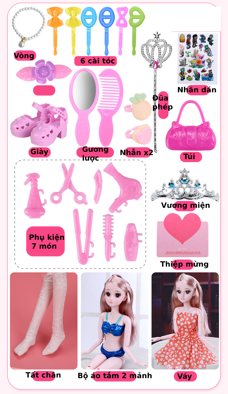THÔNG TIN SẢN PHẨM - Tên: Búp Bê Bjd Xinh Xắn Cao 30cm Với 21 Khớp Linh Hoạt - Đồ Chơi Búp Bê Công Chúa Cho Bé Gái - Chất liệu: Nhựa - Vải -