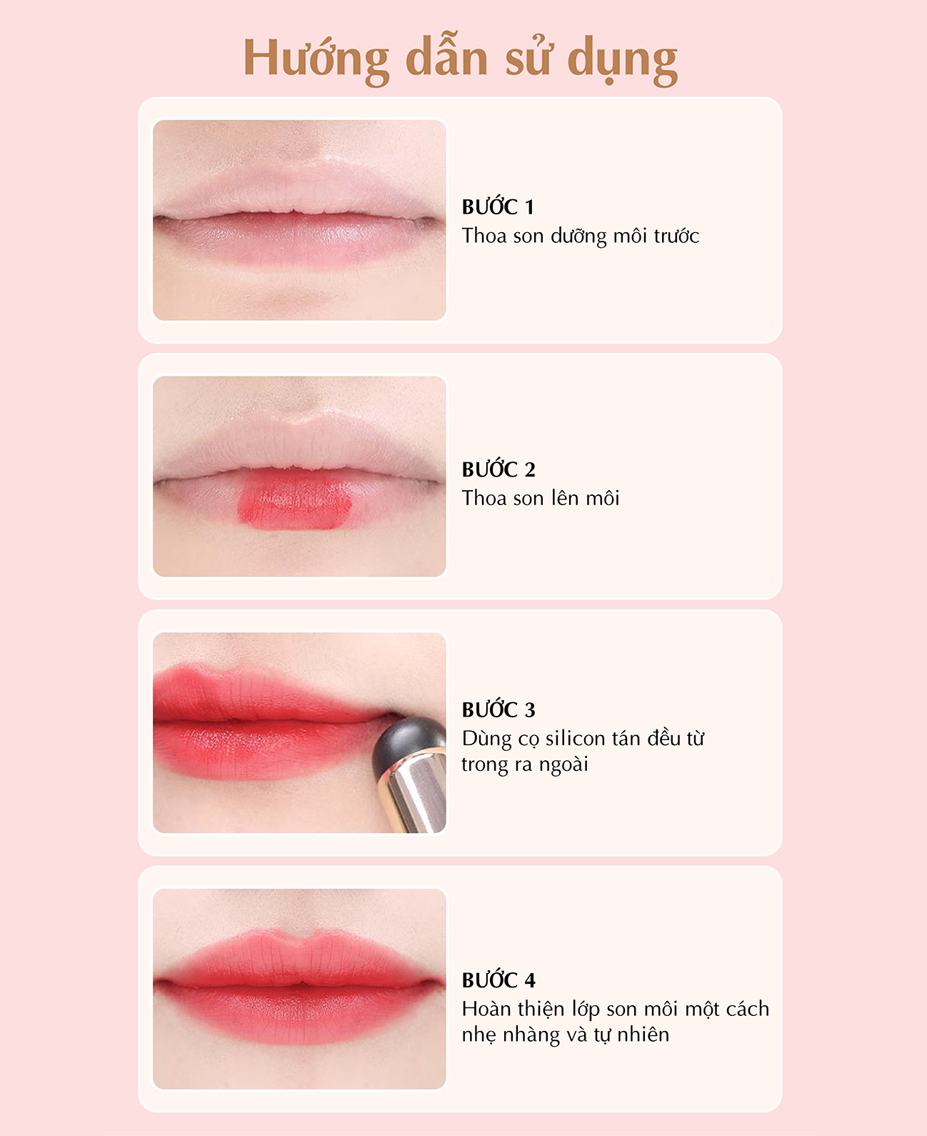 Mua tại TiktokCọ môi dạng thạch dẻo bằng silicon cao cấp, phụ hợp mọi loại da không gây kích ứng, giúp bạn tạo hiệu ứng ombre cho môi dễ dàng, đồng thời che khuyết điểm hiệu quả. Đầu cọ là thiết kế hình dáng ngón tay giúp linh hoạt sử dụng như đầu ngón tay thật của bạn, đồng thời dễ dàng lau chùi, vệ sinh sạch sẽ.