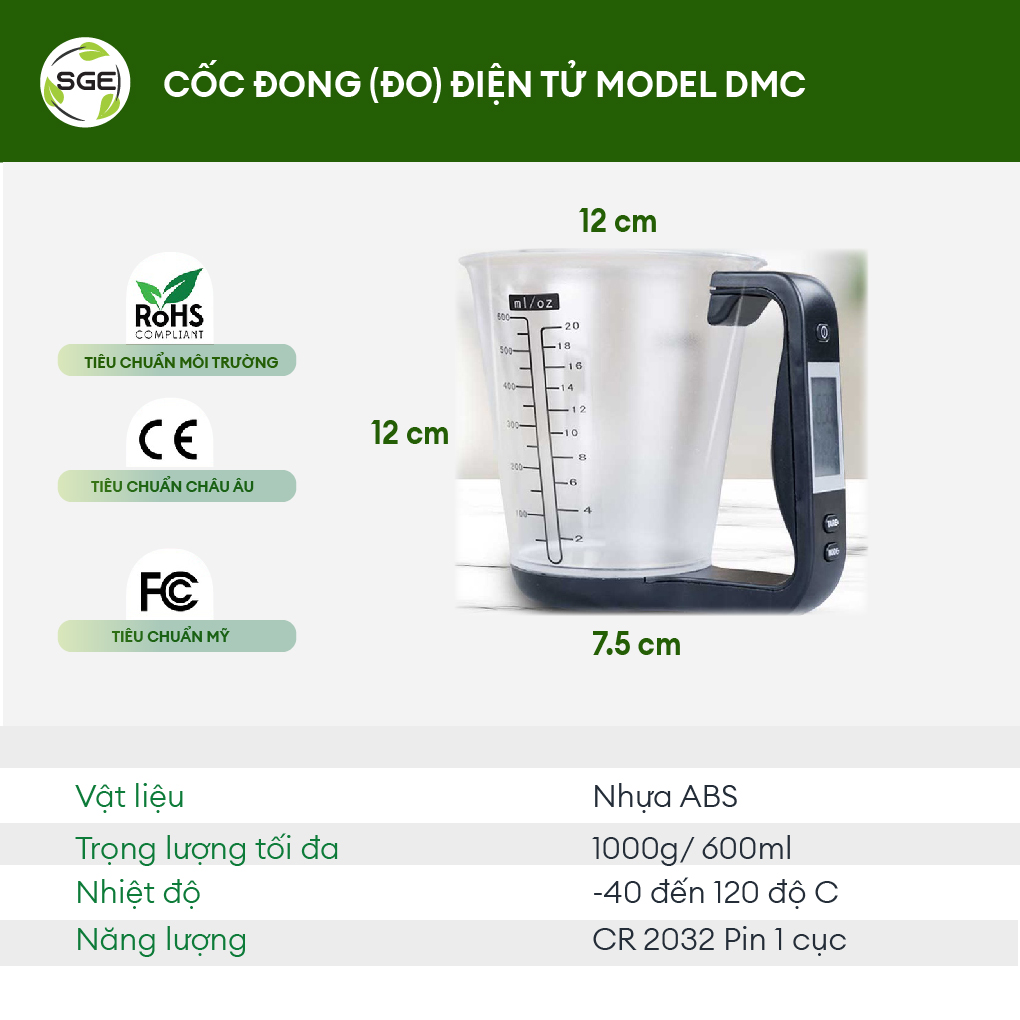 Cốc đong điện tử Model DMC giúp bạn dễ dàng thuận tiện trong việc đong đo nguyên liệu thực phẩm, trong làm bánh hoặc nấu ăn.