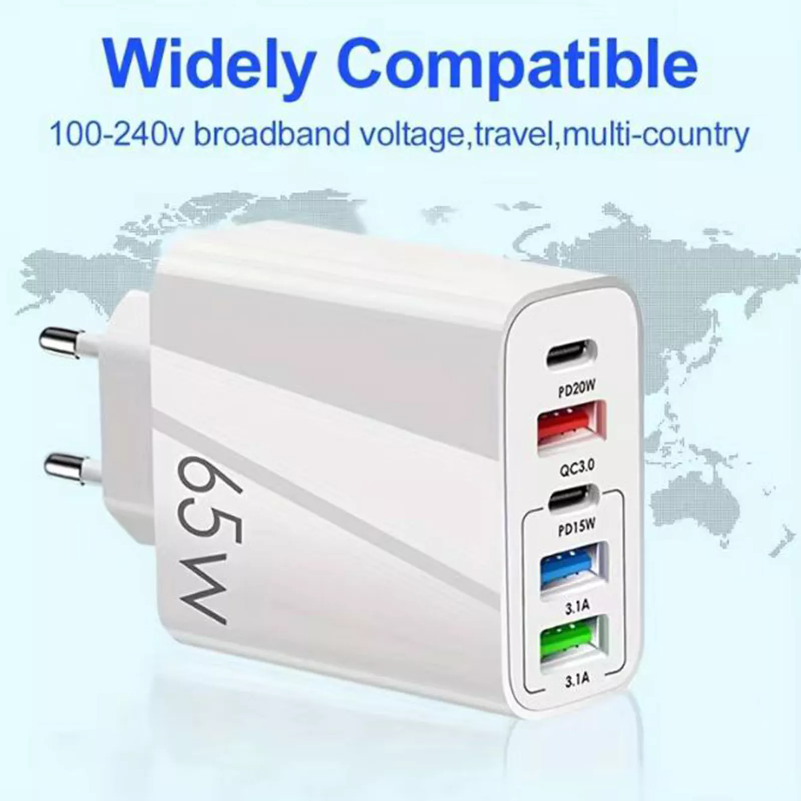 Lưu ý: Xin chào, "65W" Trong bộ sạc có nghĩa là tổng số PD65w (không bao gồm cổng QC3.0), Như trong hình ảnh về điện áp và kiểm tra dòng điện. 1 cổng PD có thể đạt tối đa 20W MAX 3 cổng có thể đạt tối đa 65W