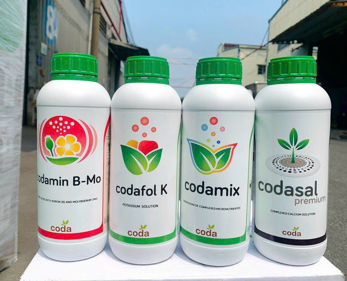 2. Phân bón lá vi lượng Codamix *Thành phần định lượng: - Fe: 33.200 ppm, Mn: 17.700 ppm, Cu: 1.200 ppm, Mo: 1.000 ppm, B: 2.600 ppm * Đối tượng sử dụng: - Cây ăn