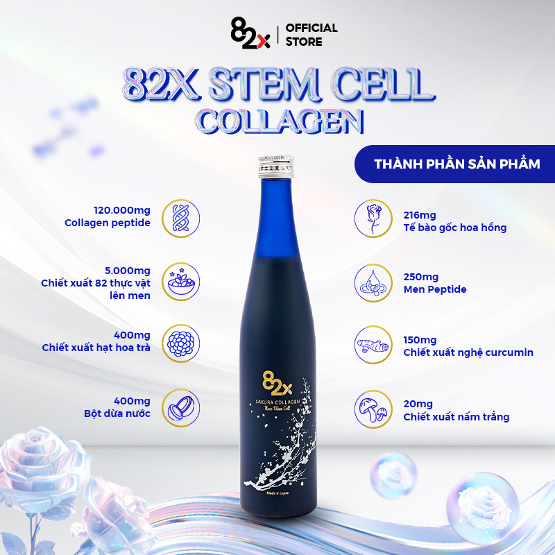 - Ngoài ra còn có chiết xuất Hoa anh đào, SỤn cá mậpTơ thủy phân, Hạt sơn trà, Sữa ong chúa, Vitamin E, Vitamin B1, B2, B6, Hyaluronic acid… bung tỏa nét thanh xuân của làn da đẹp Đặc điểm nổi bật Collagen áp dụng công nghệ Kosoteki - tạo phân tử kích thước siêu nhỏ bằng 1/5 phương pháp thủy phân thông thường, hỗ trợ "chống già" cho da. Công thức 82 thực vật lên men nạp năng lượng cho da, tăng cường khả năng hấp thụ Collagen. Hàm lượng chất béo = 0, không gây nổi mụn, tăng cân khi sử dụng. Sản xuất 100% tại Nhật Bản, thành phần thiên nhiên lành tính và an toàn. Hướng dẫn sử dụng