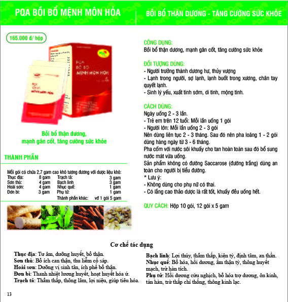 Cốm Bồi Bổ Mệnh Môn Hỏa PQA Cải Thiện Thận Dương, Mạnh Gân Cốt Và Tăng Cường Sức Khỏe Hộp 12 Gói THÔNG TIN SẢN PHẨM: