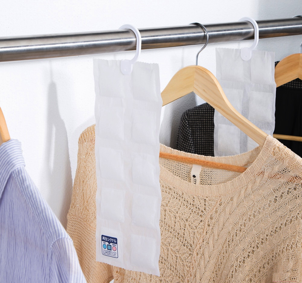 - Với cách cất giữ quần áo bằng cách gấp & xếp trong ngăn tủ: Bạn có thể bỏ vào mỗi góc của ngăn tủ 01 túi. Khi các hạt hút ẩm nhiều sẽ chuyển sang màu hồng. Lấy SP đem phơi nắng khoảng từ 4~6 giờ, hạt hút ẩm sẽ chuyển sang màu xanh dương sau đó sử dụng bình thường. Sản phẩm sản xuất theo công nghệ hiện đại của Nhật Bản cho chất lượng cao, đảm bảo các thông số an toàn kỹ thuật. Người dùng hoàn toàn yên tâm khi sử dụng.