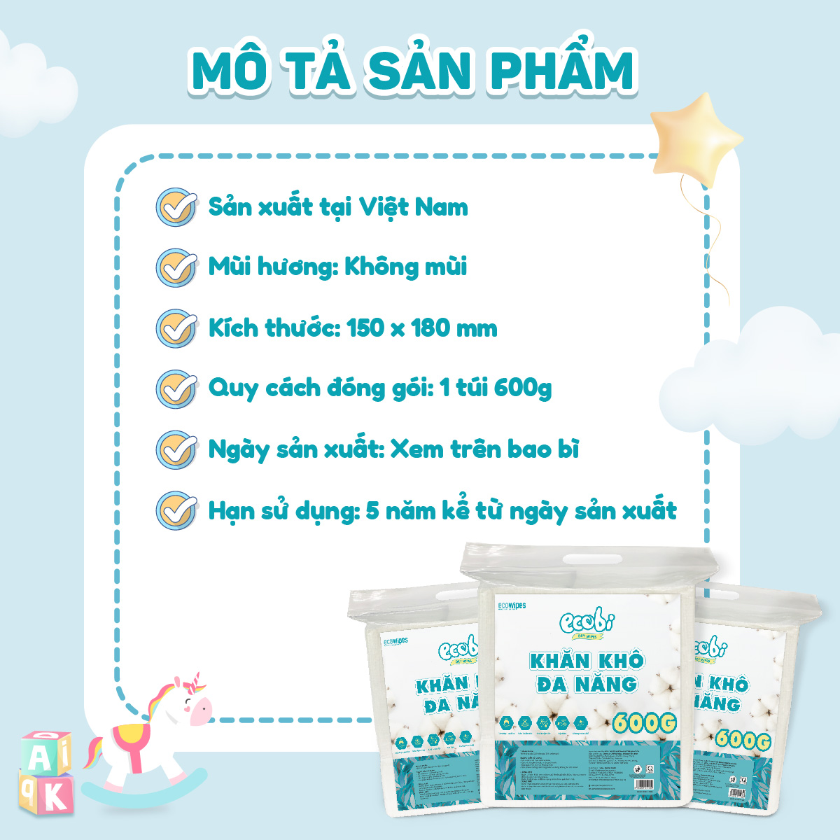 Khăn vải khô đa năng Aiko 600g siêu mềm mại, không chất bảo quản, an toàn cho bé Khăn khô đa năng Aiko 600g Brand made in Việt Nam với thiết kế thông minh, có