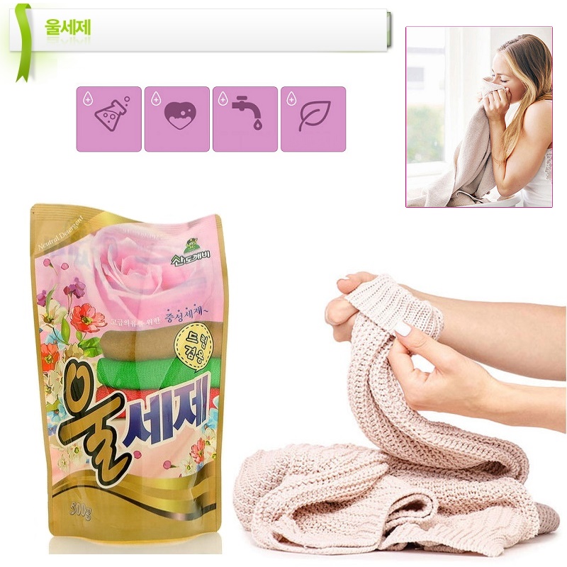 Nước giặt vải len, vải dạ, nỉ Sandokkaebi 500g là loại nước giặt chuyên dụng dành riêng để giặt áo len, áo dạ, quần áo nỉ, quần áo thể thao & quần áo, đồ lót trẻ em giúp cho quần áo, vải bền đẹp, không làm phai màu vải, giúp sợi vải mềm mại, không bai, xù và đặc biệt không gây ra hiện tượng tĩnh điện