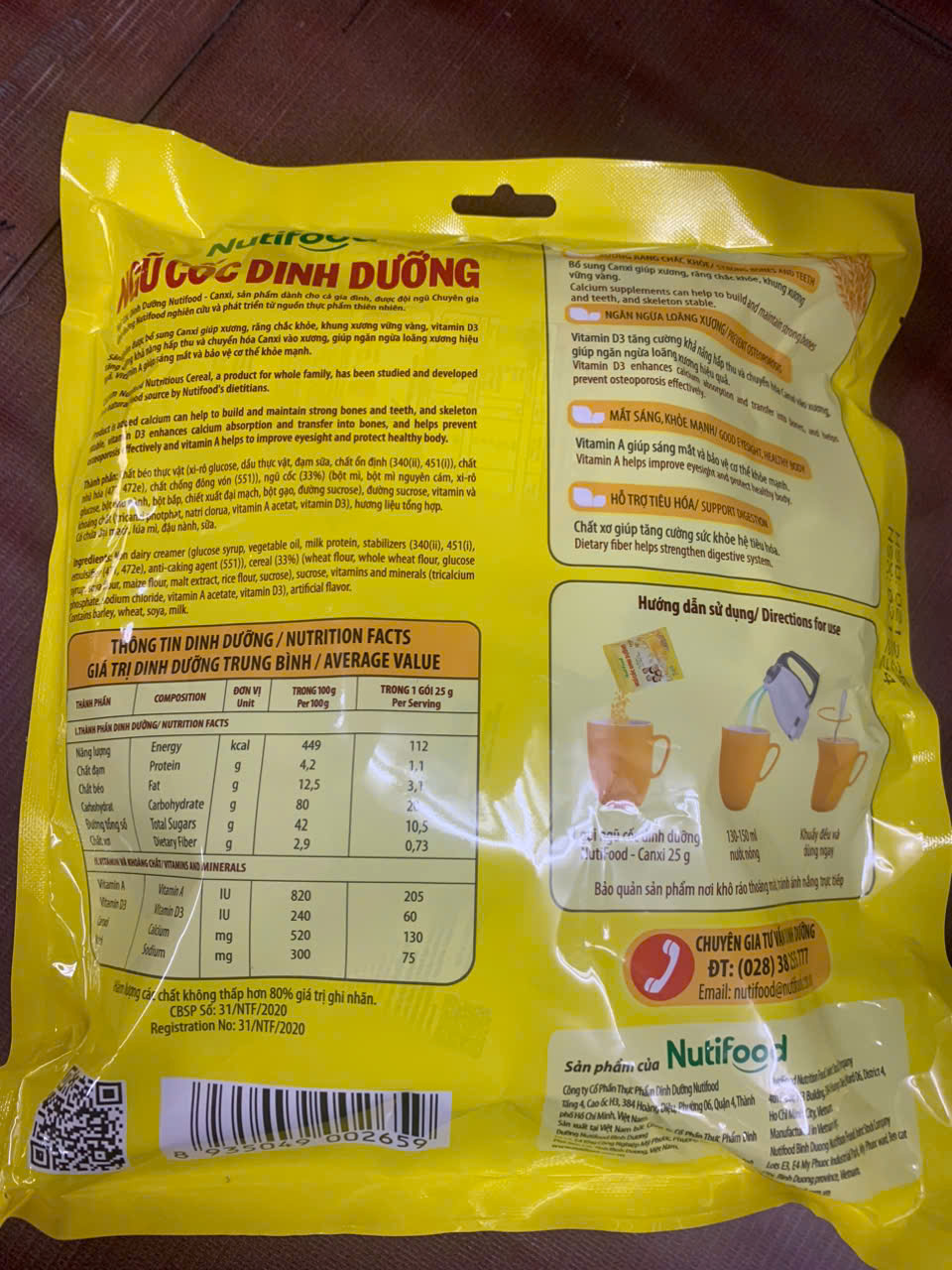 Cách dùng: Pha 1-2 muỗng ngũ cốc với 150-200ml nước ấm hoặc sữa. Có thể uống vào buổi sáng hoặc chiều.