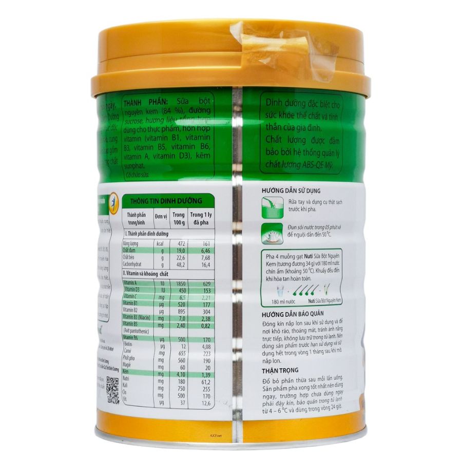 Sữa bột nguyên kem Nutifood với công thức độc quyền Health MAX cải tiến mới với hệ dưỡng chất cân bằng hoàn hảo cung cấp đầy đủ dưỡng chất thiết yếu cho cơ thể phát triển toàn diện bao gồm Protein, Canxi, Vitamin A, Vitamin D, Vitamin nhóm B, Kẽm. Sữa bột nguyên kem Nuti phù hợp với mọi người, người lớn, người cao tuổi, người già yếu suy kiệt, người suy dinh dưỡng, trẻ em từ 1 tuổi trở lên, thanh thiếu niên.