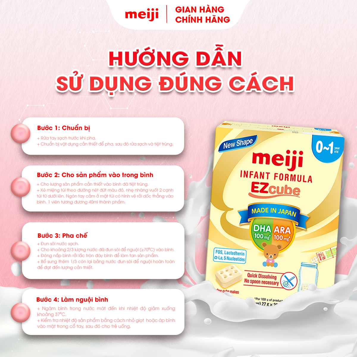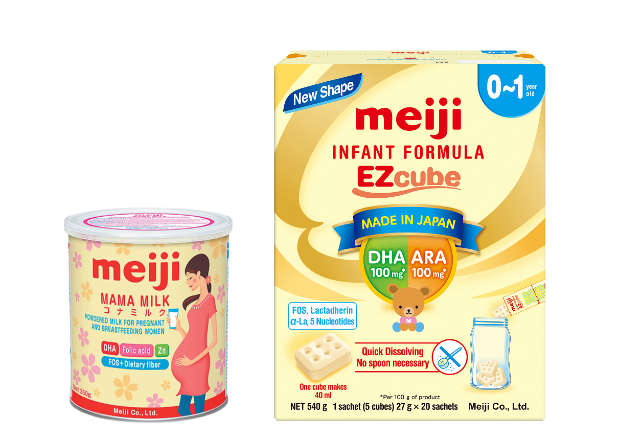- Bên cạnh sản phẩm Mama Milk bổ sung dưỡng chất cân đối cho mẹ trong quá trình mang thai, Meiji Infant Formula EZcube sẽ là người bạn đồng hành hỗ trợ mẹ chuẩn bị trước sinh, yên tâm đón bé.