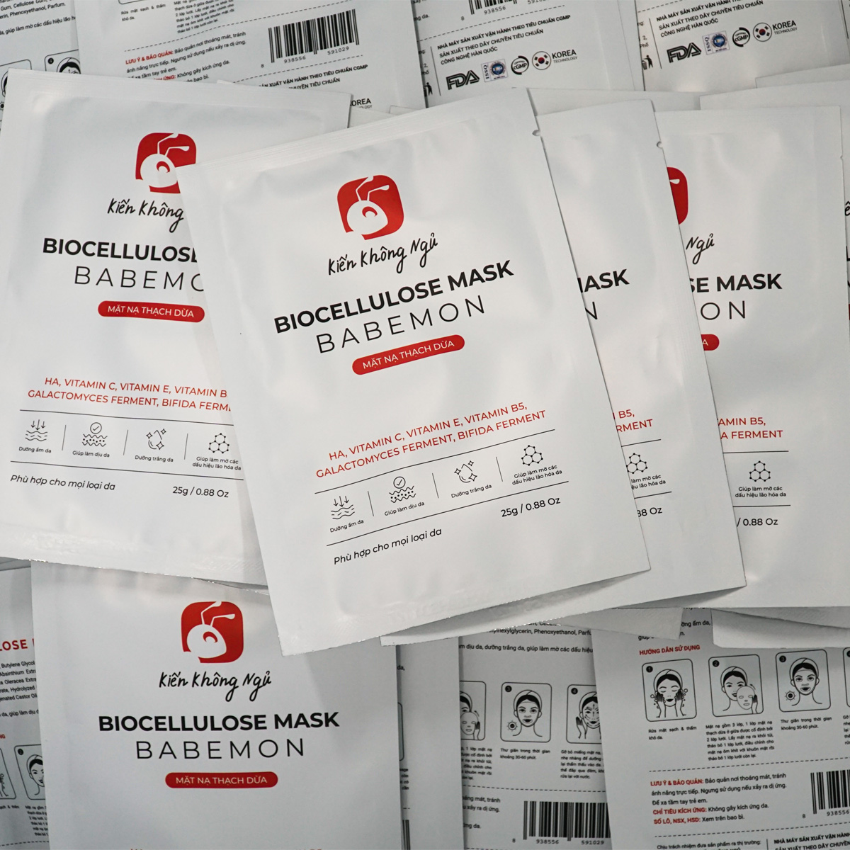 Combo 10 miếng Mặt nạ sinh học dừa tươi lên men – Mặt nạ thạch dừa Biocellulose Mask Babemon Mặt nạ sinh học dừa tươi lên men cao cấp – Mặt nạ thạch dừa Biocellulose Mask Babemon của Kiến Không Ngủ dưỡng da trắng sáng, làm mờ các dấu hiệu lão hóa da, cấp ẩm, hỗ trợ phục hồi và trẻ hóa làn da, giúp làn da căng mịn, sáng khỏe. Sở hữu công thức đặc biệt được nghiên cứu kỹ lưỡng bởi các chuyên gia R&D của Việt Nam và Hàn Quốc, phù hợp với đặc trưng của làn da phụ nữ Việt Nam, mặt nạ thạch dừa Biocellulose Mask Babemon giúp làm dịu da, hỗ trợ làm đều màu da, cung cấp đủ độ ẩm cho da, giúp da săn chắc, mịn màng hơn. Sau mỗi lần sử dụng, bạn sẽ cảm nhận ngay sự tươi mới, mịn màng và sức sống trên làn da của mình. CÔNG DỤNG