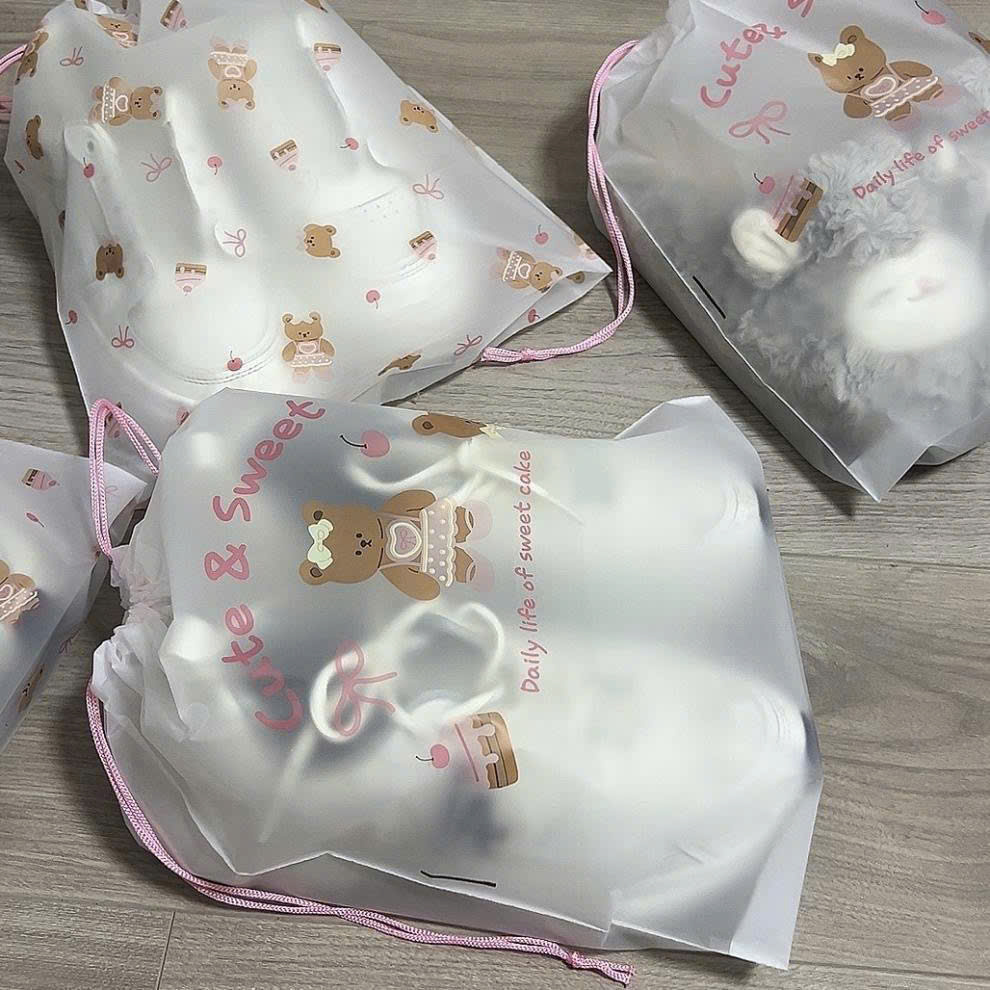 Màu sắc: Tông trắng mờ trong suốt phối hồng pastel nhẹ nhàng, phù hợp với phong cách dễ thương – Hàn Quốc CÔNG DỤNG & ỨNG DỤNG: Túi đựng giày dép: Không lo bẩn hành lý khi đi du lịch, công tác Túi đựng quần áo lót / đồ ngủ / khăn mặt: Gọn gàng – sạch sẽ Túi đựng mỹ phẩm / phụ kiện cá nhân: Tiện lợi, tránh thất lạc Túi đựng đồ sau sinh / túi sơ sinh: Nhẹ nhàng, dễ sắp xếp vali cho mẹ và bé Túi đựng quà tặng / đồ handmade: Tăng tính thẩm mỹ, dễ thương, tạo điểm nhấn ĐIỂM NỔI BẬT: Thiết kế trong suốt mờ, dễ nhận diện vật bên trong Chống bụi – chống ẩm nhẹ – bảo quản đồ tốt hơn Họa tiết in sắc nét, không bong tróc, không phai màu Dễ vệ sinh, nhanh khô, tái sử dụng nhiều lần – tiết kiệm và thân thiện môi trường Nhẹ, dễ gấp gọn – không chiếm diện tích vali/balo Phù hợp với học sinh – sinh viên – dân văn phòng – mẹ bầu – mẹ bỉm sữa – người hay đi du lịch Dễ dàng kết hợp với các loại túi xách du lịch, balo, vali để giữ đồ ngăn nắp và sạch sẽ hơn