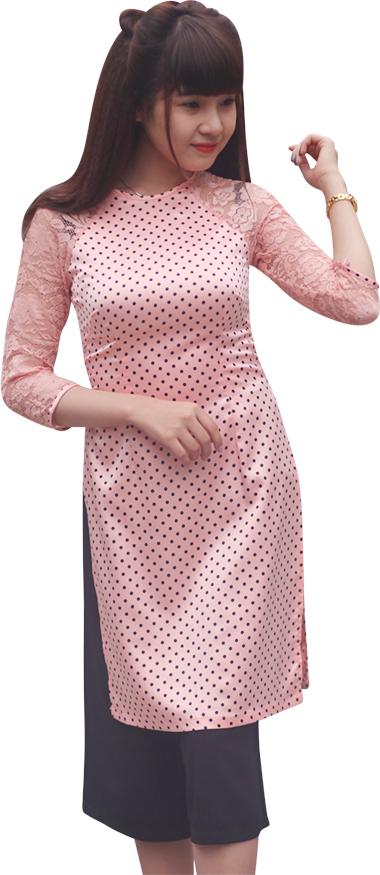 ✨Combo 2 Áo Dài Lụa Chấm Bi FATRALY - Hồng + Ví Cầm Tay