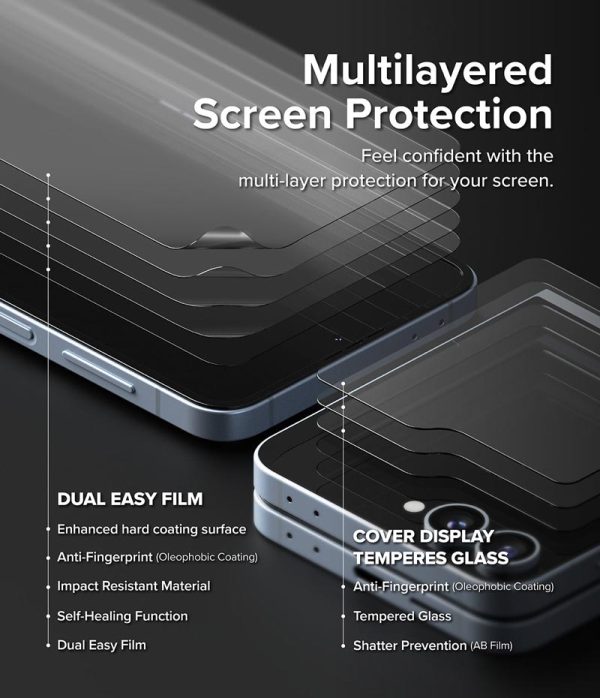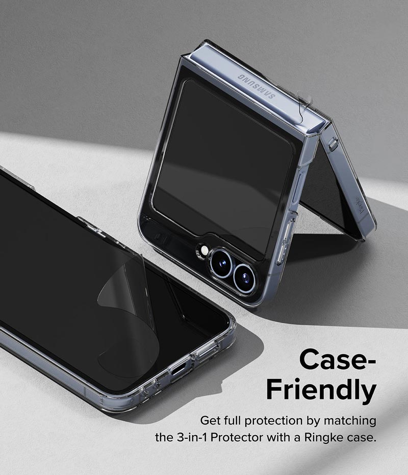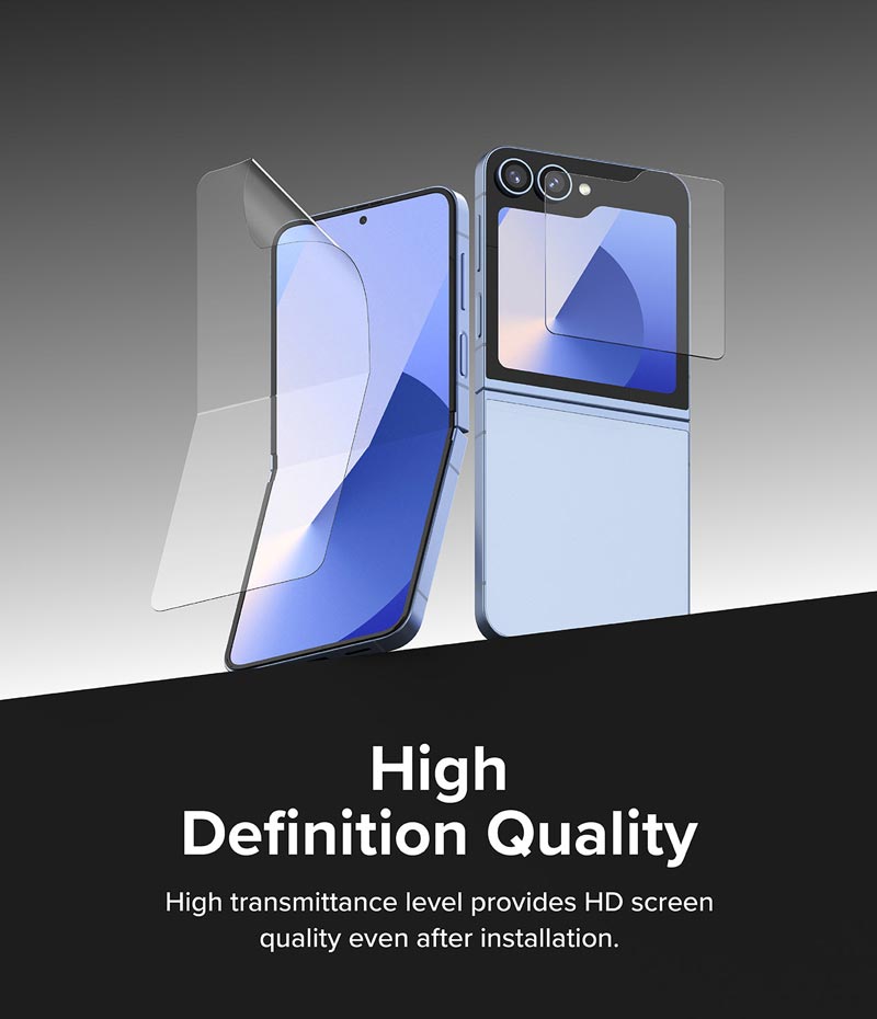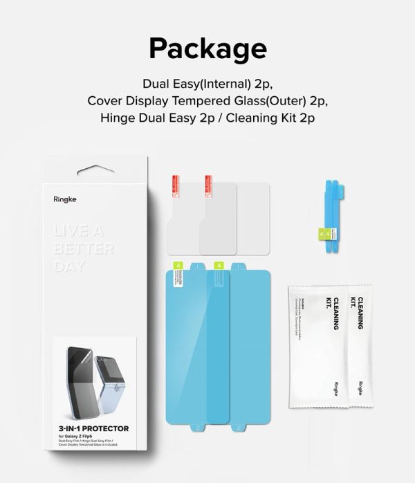 Bộ dán màn hình Samsung Galaxy Z Flip 6 RINGKE 3-in-1 Protector giúp bảo vệ toàn diện màn hình và bản lề cho điện thoại Samsung Galaxy Z Flip 6 gồm: dán cường lực màn hình ngoài, dán mềm màn hình bên trong và dán mềm cho phần bản lề giúp chống trầy.