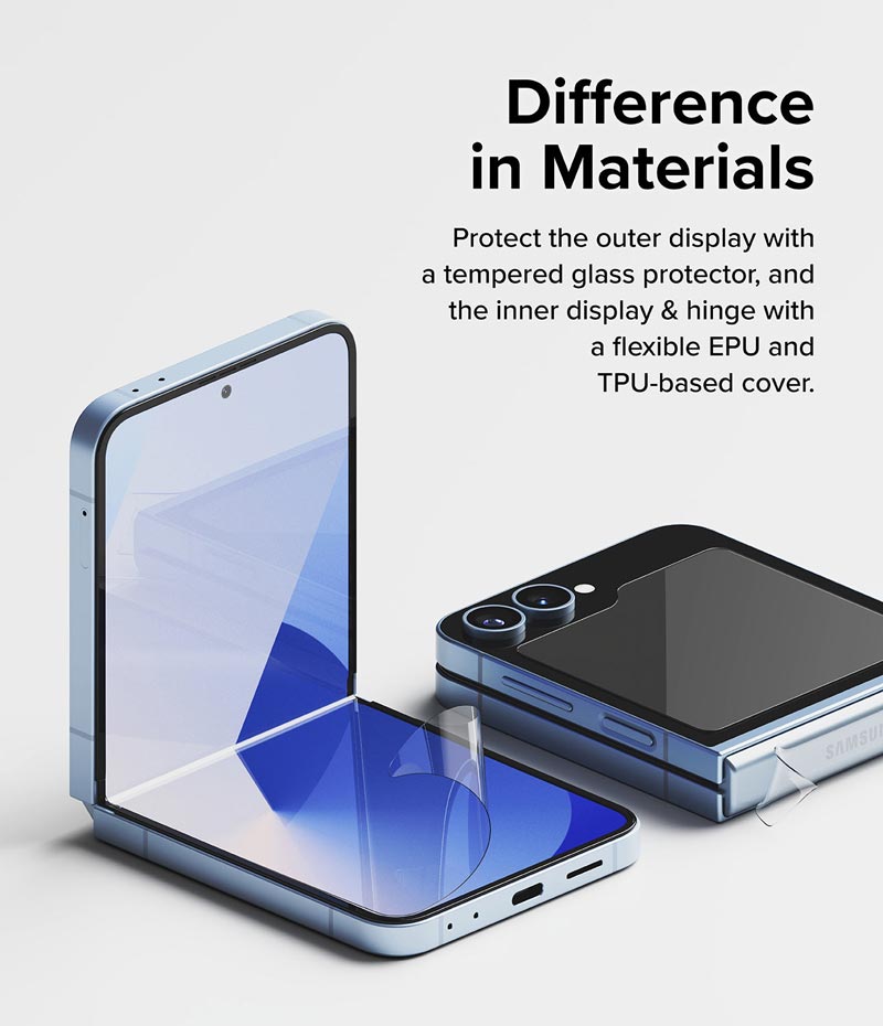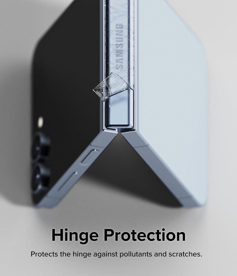 Bảo vệ phần bản lề gấp cho Galaxy Flip 6 với miếng dán TPU mỏng, bao phủ toàn diện để tránh trầy xước và bám bụi bẩn.