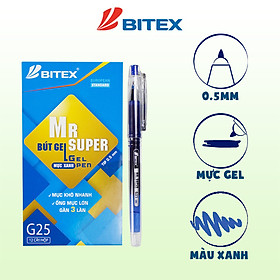 ✨Combo 2 Bút gel Bitex Mr Supper mực xanh G25 0.5mm