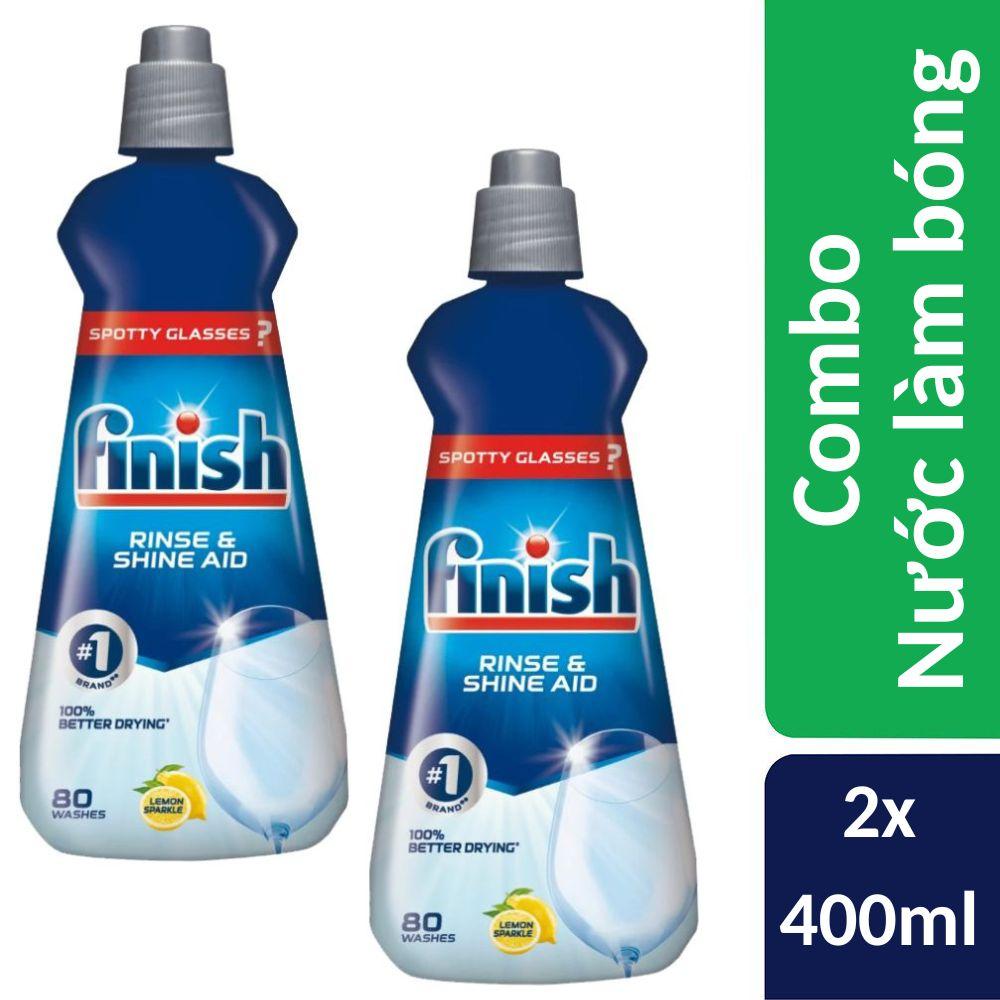 Combo 2 chai nước làm bóng và khô bát, đĩa Finish Dishwasher Rinse & Shine Aid Lemon 400ml (là nước làm bóng và khô bát, đĩa cao cấp chuyên dùng cho máy rửa bát). Xuất xứ: Ba Lan (EU)
