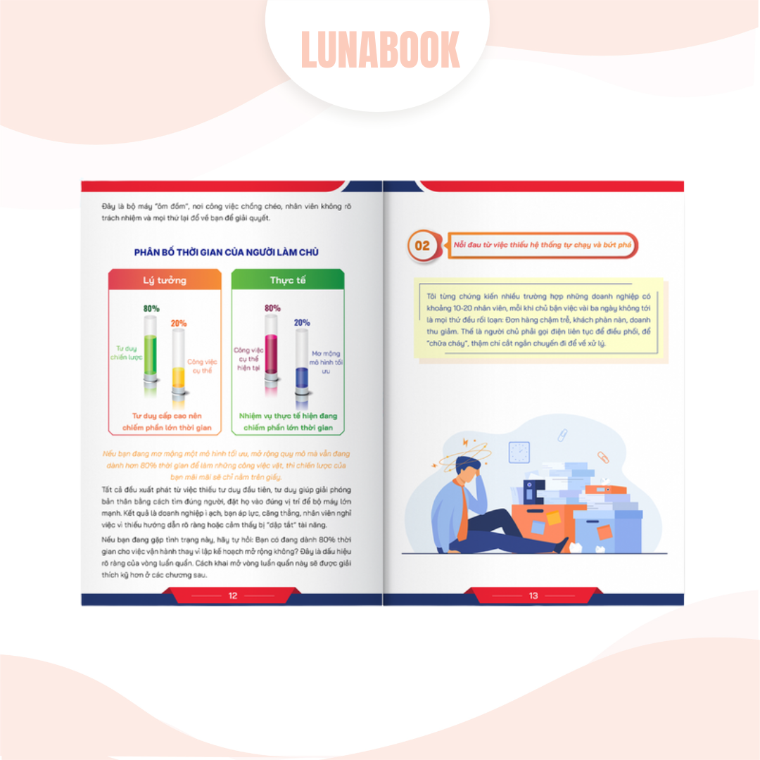 • Cuốn sách cung cấp những chiến lược thực tiễn để phân vai rõ ràng Sếp – Tướng – Binh, đồng thời xây dựng một hệ thống giao việc – kiểm soát – kế thừa hiệu quả. Nhờ đó, doanh nghiệp có thể vận hành trơn tru và bền vững, giúp người lãnh đạo thoát khỏi công việc chi tiết để tập trung vào chiến lược phát triển dài hạn.