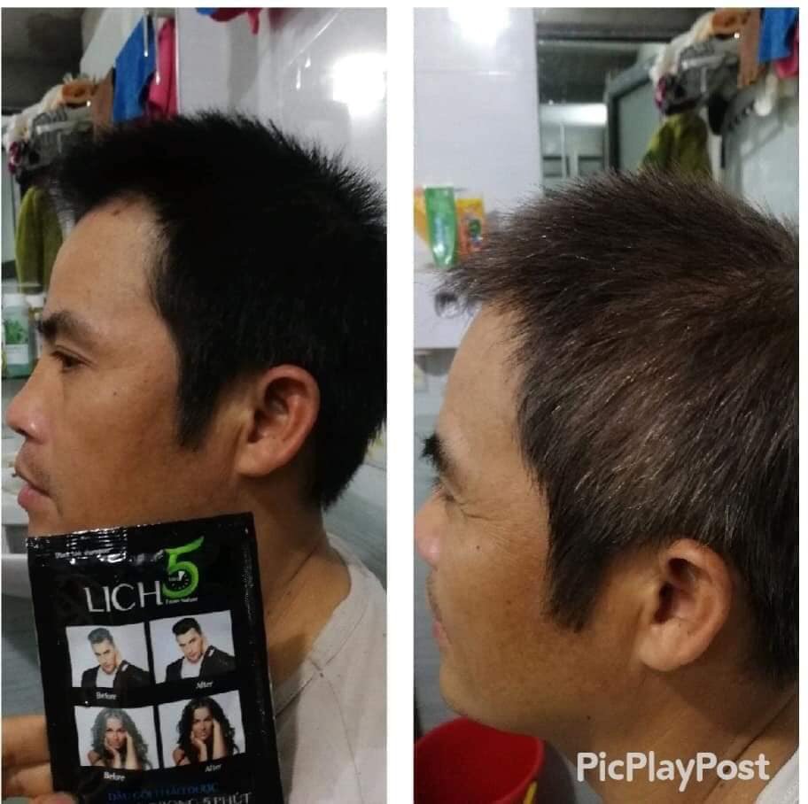 - Không phá hủy cấu trúc tóc, giúp tóc đen tuyền tự nhiên Lich5 - Giải pháp phủ bạc từ thảo dược - Trẻ ra 10 tuổi chỉ trong 5-10 phút DẦU GỘI ĐEN TÓC LICH 5