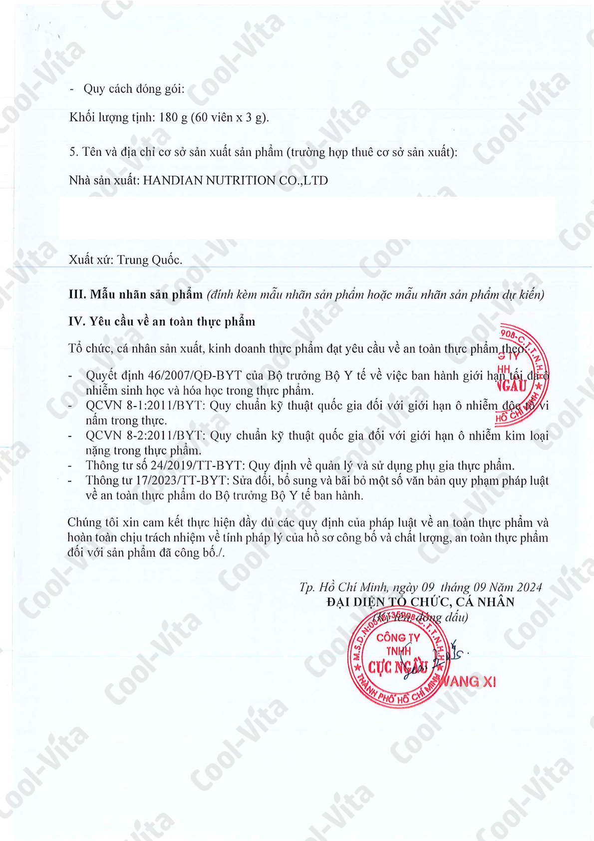 - Nhai kỹ trước khi nuốt. Lưu ý: Đối với người đang sử dụng thuốc, nên tham vấn ý kiến của Bác Sĩ về thành phần của sản phẩm trước khi dùng. Không sử dụng cho trẻ em dưới 5 tuổi, phụ nữ có thai hoặc đang cho con bú. Không sử dụng sản phẩm có dấu hiệu lạ hoặc sản phẩm đã hết hạn sử dụng. Không sử dụng cho người có mẫn cảm với bất kỳ thành phần nào của sản phẩm. Bảo quản: Bảo quản nơi khô ráo và thoáng mát, tránh tiếp xúc với nguồn nhiệt và ánh nắng mặt trời. Nhiệt độ 5-25 độ C *Sản phẩm này không phải là thuốc và không có tác dụng thay thế thuốc chữa bệnh (Hiệu quả của sản phẩm tùy thuộc vào cơ địa của từng người mà tác dụng sẽ khác nhau) Sản phẩm không thể thay thế cho chế độ ăn uống đa dạng và cân bằng hoặc lối sống lành mạnh. Nếu có bất kỳ phản ứng phụ nào xảy ra, hãy ngừng sử dụng sản phẩm này ngay lập tức. Xuất xứ: Trung Quốc Thời hạn sử dụng: 18 tháng kể từ NSX Mã sản phẩm: 0769503011967