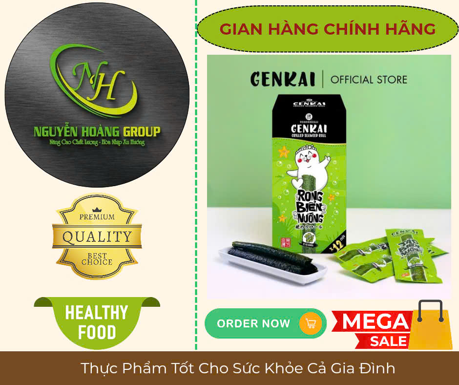 Tên sản phẩm: RONG BIỂN NƯỚNG CUỘN Có 2 Vị : Tự Nhiên & Vị Cay NÓNG Thành phần: Rong biển 68%, dầu ngô 26.7%, dầu mè 4.3%, muối biển 1% Lá Rong biển có
