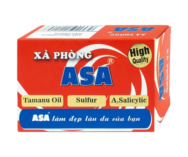 Mua tại TiktokXà phòng ASA với hai hoạt chất chính Acid Salicylic và Sulfur có tác dụng giúp làm sạch vi khuẩn phổ rộng (gram - lẫn gram +), một trong những tác nhân gây mụn trên da. Hướng dẫn sử dụng: Dùng thay xà phòng tắm thông thường khi tắm, rửa mặt. Chà xoa lên bề mặt da vùng có biểu hiện mụn, nấm, vảy gàu… trên da. Giữ nguyên xà phòng trên da, sau 5-10 phút tắm hoặc rửa lại bằng nước sạch, có thể sử dụng hàng ngày thay cho xà phòng tắm thông thường. Thành phần chính: Sodium palmitate, sulfur, Acid Salicylic 2.5%, Fragrance, Color CI 16255+, CI 19140. Để xa tầm tay trẻ em. Chỉ sử dụng bên ngoài.
