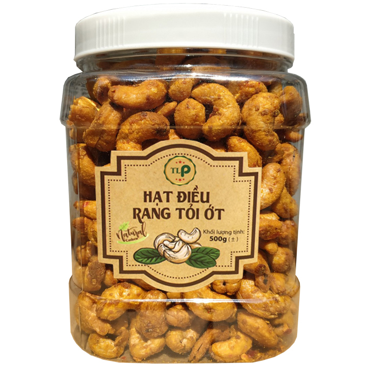 Hộp Hạt Điều Rang Tỏi Ớt Lá Chanh 500G- Hạt Điều Rang Muối - Đồ Ăn Vặt Nội Địa Giá Rẻ - Ruvask