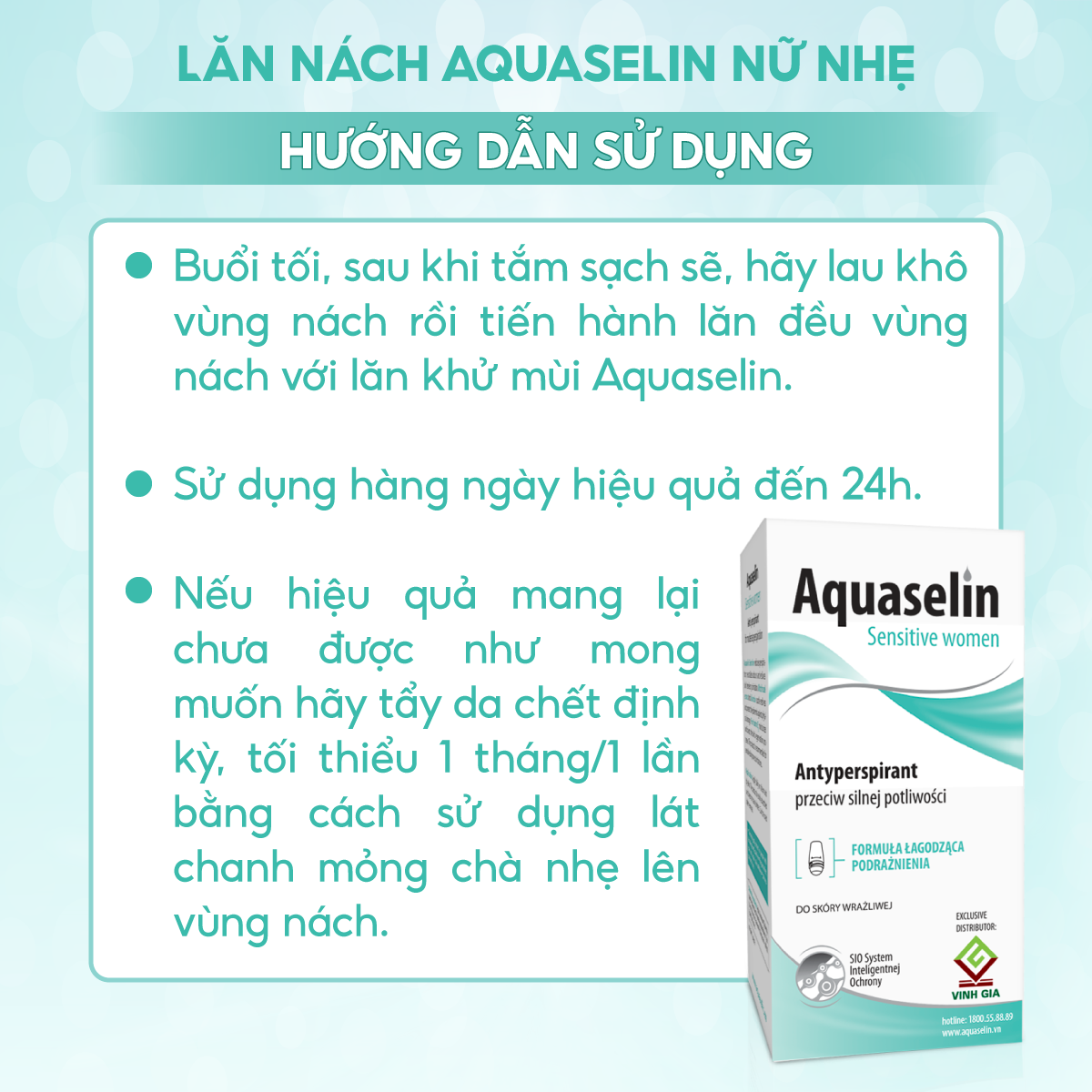 Lăn nách không mùi Aquaselin - lăn khử mùi hôi cho cả nam, nữ, không vàng áo, thâm, đổ mồ hôi