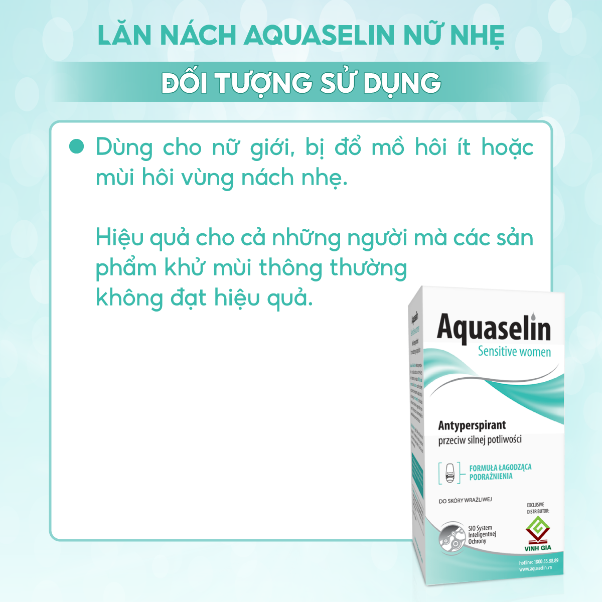 - ĐỐI TƯỢNG SỬ DỤNG LĂN NÁCH KHÔNG GÂY Ố VÀNG ÁO AQUASELIN