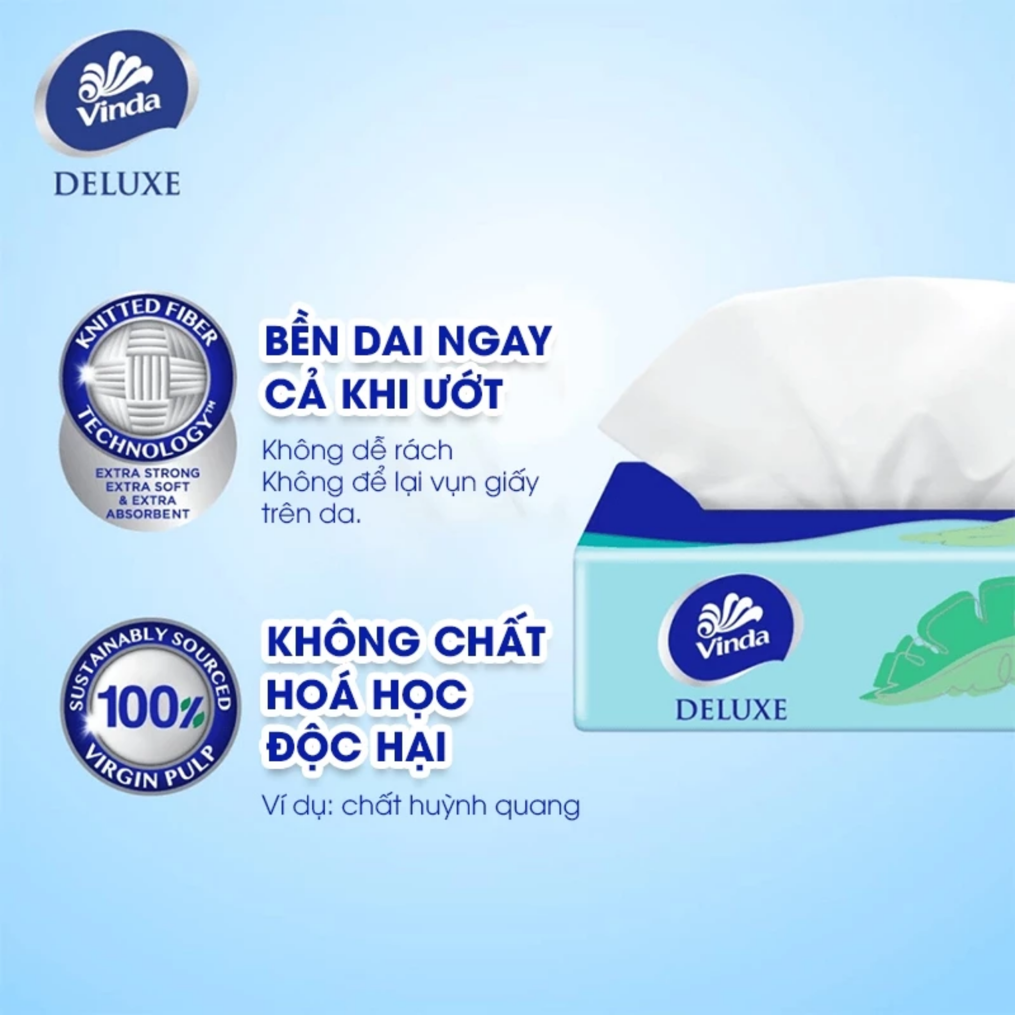 Thành phần 100% bột giấy nguyên thủy.  Hướng dẫn sử dụng Mở hộp, rút từng tờ để sử dụng.  Thông tin sản xuất Bảo quản: Nơi khô ráo, thoáng mát.  Quy cách đóng gói: 180 tờ x 2 lớp, (200 x 190)
