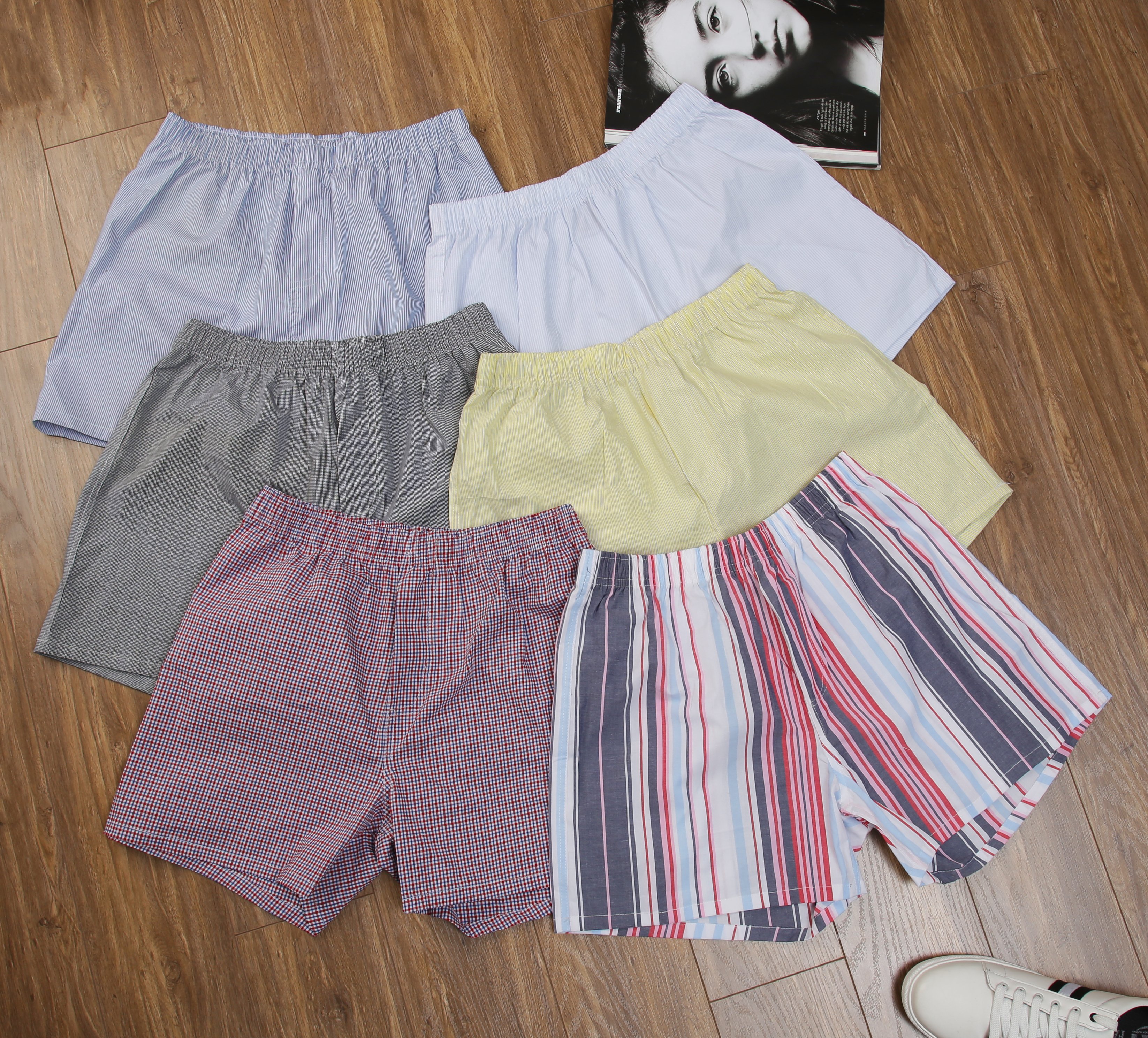 Thương Hiệu: Nourish Sản Xuất: CTY TNHH SX TM DV NHẤT THÀNH COMBO 4 QUẦN ĐÙI NAM MẶC NHÀ COTTON – THOÁNG MÁT, LỊCH SỰ, CỰC DỄ MẶC Họa tiết sọc nam tính –