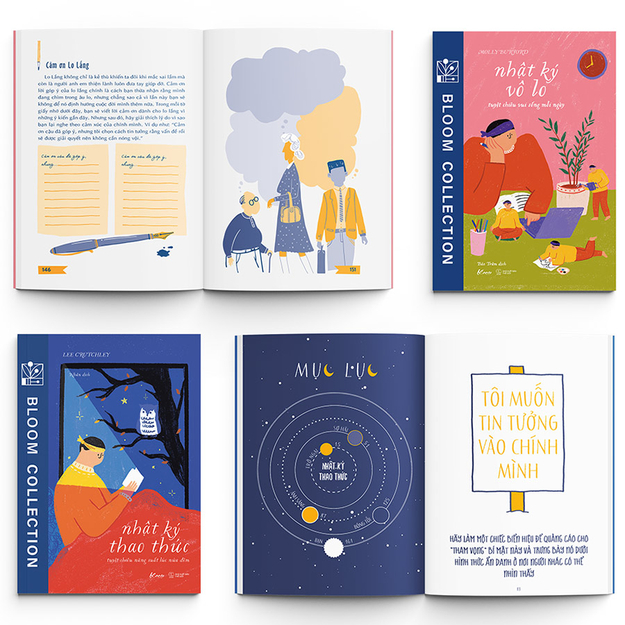 Nhật ký thao thức của Bloom Collection vol.3 sẽ cùng bạn vẽ, viết, lên kế hoạch, làm trắc nghiệm nhanh và trải qua vô số các hoạt động sáng tạo khác, khơi mở cho bạn cách củng cố khả năng tư duy, hệ thống lại mớ bòng bong trong đầu, đồng thời kết nối với chính mình một cách sâu sắc nhất.