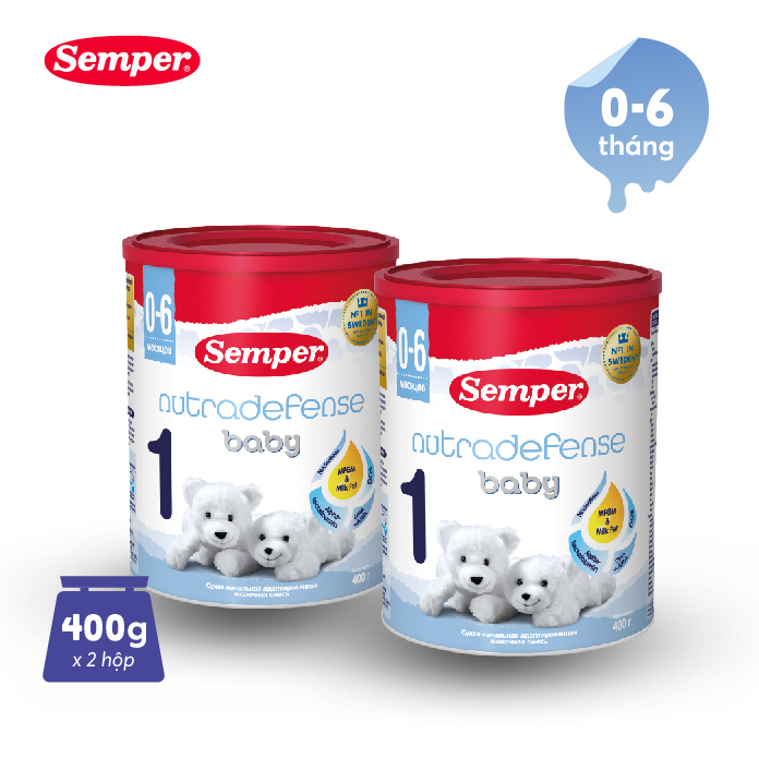 COMBO 2 HỘP SỮA SEMPER NUTRADEFENSE BABY SỐ 2 CHO TRẺ TỪ 6 THÁNG TUỔI TRỞ LÊN TUỔI 400G/HỘP THÔNG TIN SẢN PHẨM - Thương hiệu: Semper - Xuất xứ sản phẩm: Nhập khẩu