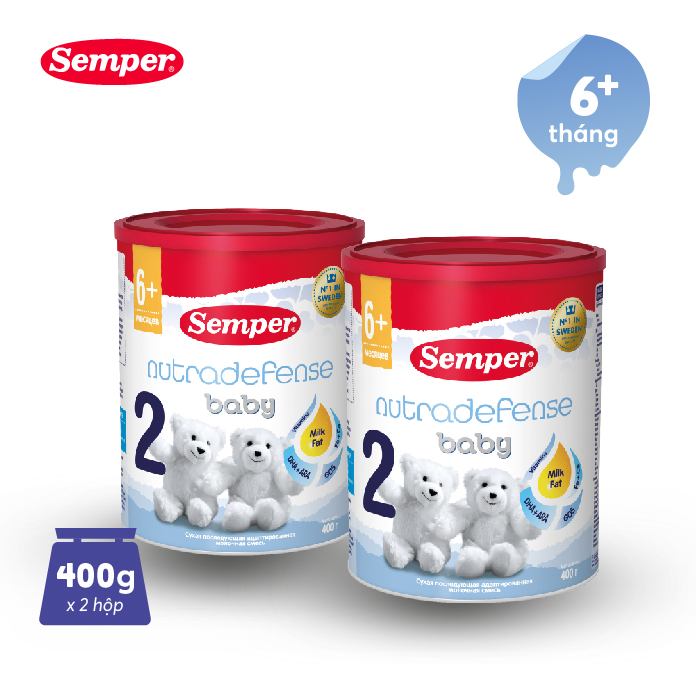 COMBO 2 HỘP SỮA SEMPER NUTRADEFENSE BABY SỐ 2 CHO TRẺ TỪ 6 THÁNG TUỔI TRỞ LÊN TUỔI 400G/HỘP THÔNG TIN SẢN PHẨM - Thương hiệu: Semper - Xuất xứ sản phẩm: Nhập khẩu