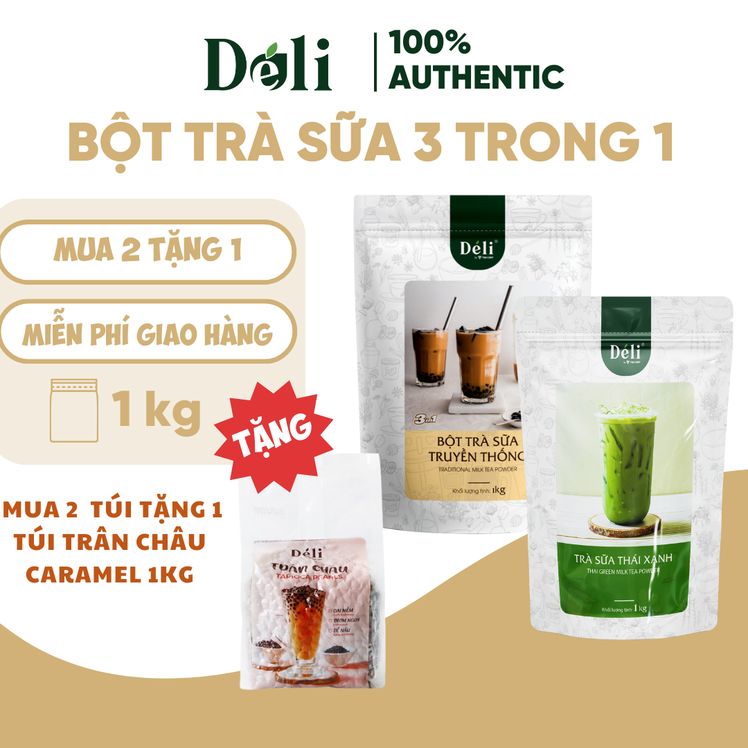 ✨Combo 2 Túi Bột trà sữa thái xanh + truyền thống 3in1 Déli - 1kg pha chế trà sữa tiện lợi, nhanh chóng