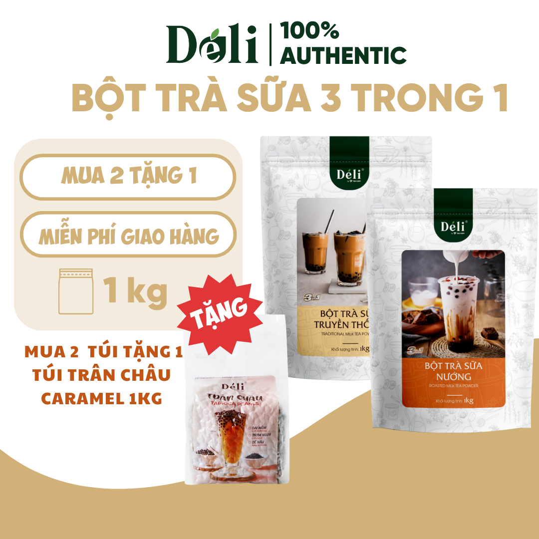 ✨Combo 2 Túi Bột trà sữa vị nướng + truyền thống 3in1 Déli - 1kg pha chế trà sữa tiện lợi, nhanh chóng