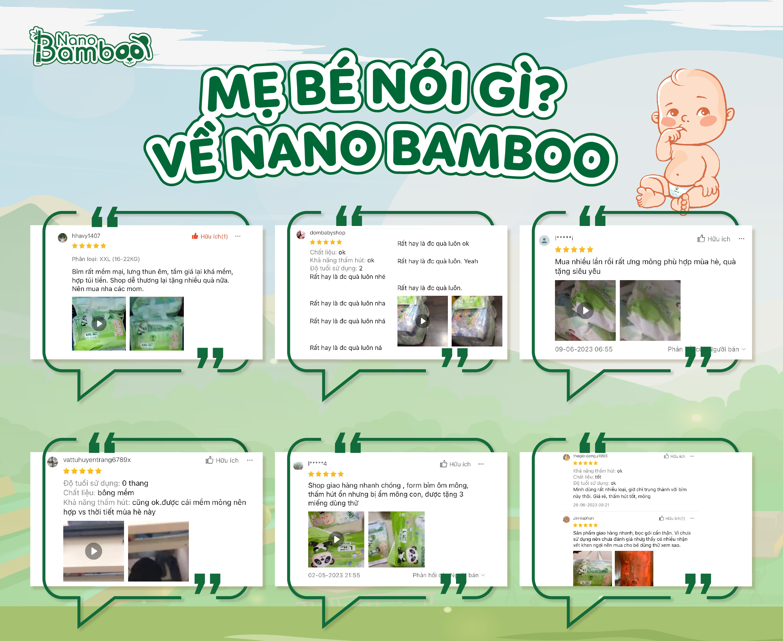 [Combo tiết kiệm] 3 bịch tã/bỉm Nano Bamboo Chính hãng sợi tre. Tiết Kiệm 120k cho mẹ kèm quà tặng