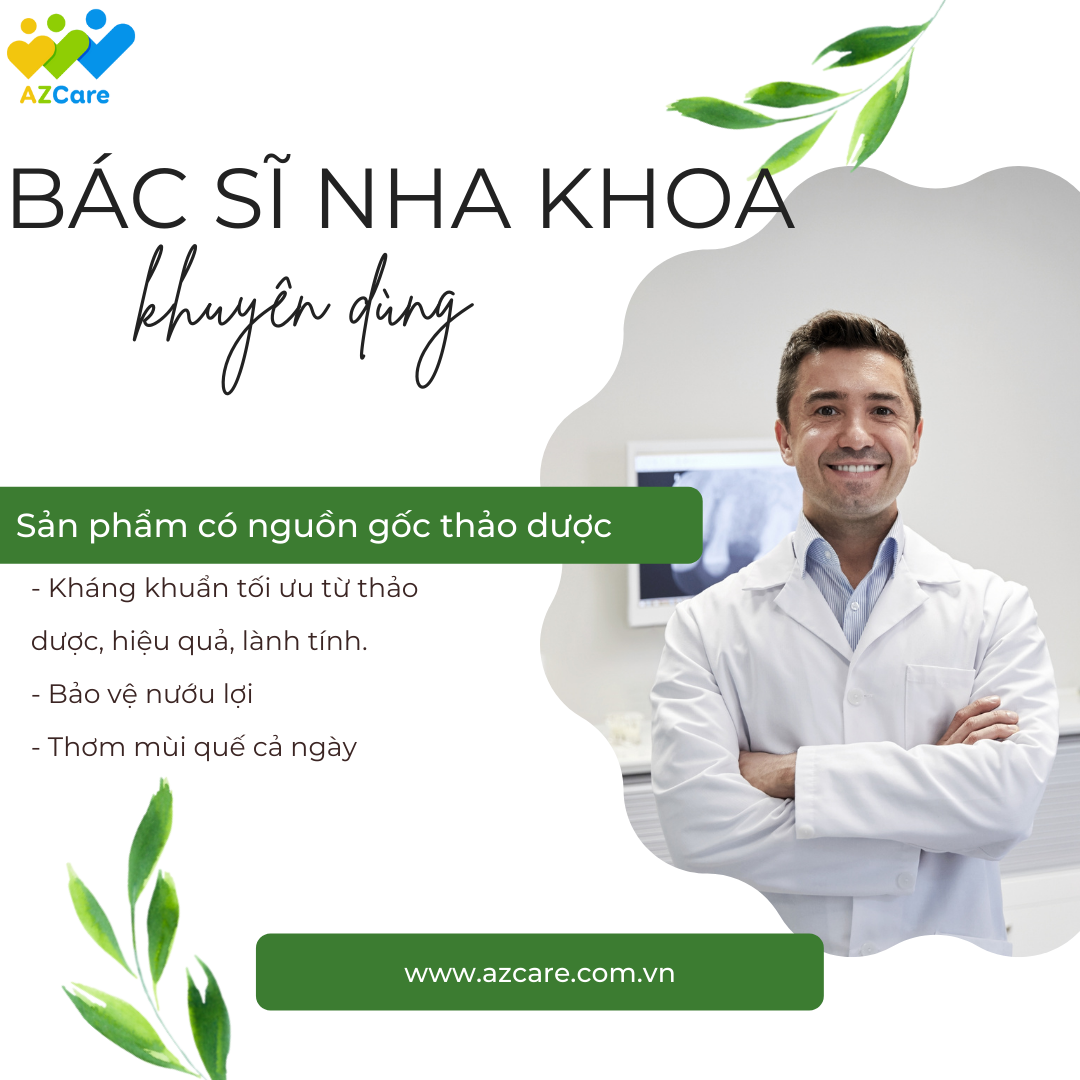 NƯỚC SÚC MIỆNG THẢO DƯỢC CINCARE: NƯỚC HOA CHO MIỆNG - LÁ CHẮN CHO RĂNG Với thành phần hoàn toàn từ thiên nhiên không chứa chất tạo màu, không cồn, không paraben, Nước súc miệng Thảo dược Cincare an toàn tuyệt đối với người sử dụng kể cả trẻ nhỏ, phụ nữ mang bầu hoặc đang cho con bú. Hàng nghìn khách hàng mắc các bệnh lý về răng miệng đã sử dụng liệu trình 3-5 chai Nước súc miệng thảo dược Cincare và nhận thấy hiệu quả trên cả mong đợi: Khử sạch mùi hôi ngay sau lần sử dụng đầu tiên. 5 tới 7 ngày đầu: Biểu hiện sưng lợi (nướu), chảy máu chân răng giảm đáng kể. Bớt viêm nhiễm lợi, không còn đau buốt thường xuyên. Sau 2 tuần: Mùi khó chịu dai dẳng hết hẳn, chảy máu chân răng không còn, hơi thở thơm tho, lợi khỏe, bám chắc vào răng. Sau 3 tuần: Các nhiễm khuẩn răng miệng hết hẳn, không có dấu hiệu tái phát, nướu răng ngày càng khỏe mạnh. 4 tuần tới 3 tháng: Hơi thở luôn thơm mát, nướu lợi hồng hào, không tái phát sưng viêm. Hướng dẫn sử dụng: Ngày dùng 2 lần, sáng sau khi ngủ dậy và tối trước khi đi ngủ.  Súc miệng khoảng 10ml, ngậm từ 30 giây đến 1 phút rồi nhổ ra.  Có thể pha loãng gấp đôi với nước sạch để súc miệng (Lưu ý: dùng hết ngay sau khi pha). Không cần súc miệng lại với nước sạch.  Đối tượng phù hợp: Người bị chảy máu chân răng, bệnh lý nha chu, hôi miệng.  Viêm họng, viêm amidan, viêm niêm mạc miệng, loét vùng miệng do nhiệt.  Mụn rộp vùng miệng do Herpes Simplex Virus. Người niềng răng.  Dùng sau điều trị răng hàm mặt và nhổ răng khôn.  Phòng ngừa nhiễm khuẩn răng miệng cho bệnh nhân nằm lâu ngày, không vận động. Để rõ hơn về tình trạng cũng như giải pháp cải thiện sức khoẻ răng miệng hiện tại của mình và cả gia đình, đừng ngần ngại inbox ngay cho fanpage AZCARE để được tư vấn và thăm khám online miễn phí bởi đội ngũ thạc sĩ, bác sĩ nha khoa chính quy ĐH Y Hà Nội nhé!