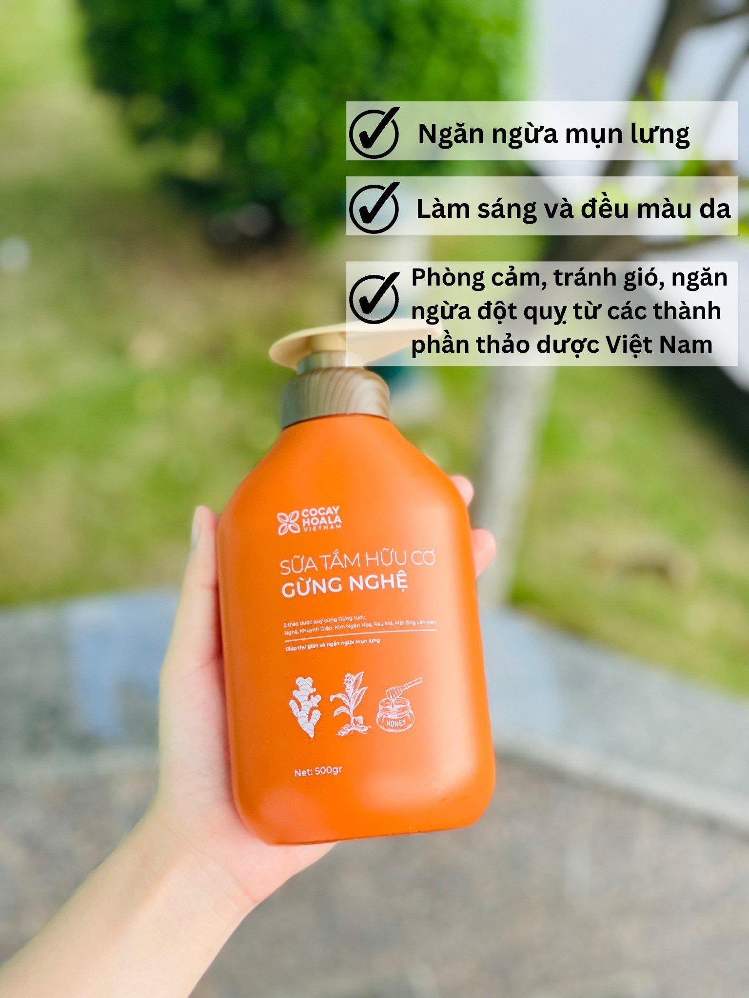 TOP 10 THƯƠNG HIỆU UY TÍN HÀNG ĐẦU CHÂU Á Cùng sữa tắm hữu cơ gừng nghệ chan hòa mái ấm gia đình Sữa tắm thảo dược Gừng Nghệ là sự kết hợp giữa tinh hoa y học cổ truyền và công nghệ bào chế hiện đại giúp tối ưu hóa công dụng của từ 9 loại thảo dược quý. Nếu như tinh dầu gừng có khả năng phòng chống cảm lạnh, trúng gió, giữ ấm cơ thể thì chiết xuất nghệ giúp làm sáng da, chống oxy hóa và trẻ hóa làn da Đặc biệt với những mẹ bầu sau sinh bị rạn da, thâm sạm da vùng bụng, đùi. Những tinh chất thiên nhiên trong sản phẩm sẽ hỗ trợ phục hồi làn da sau quá trình mang thai, nuôi dưỡng da từ sâu bên trong, giúp da trắng đều và đẹp tự nhiên. ️CÔNG DỤNG