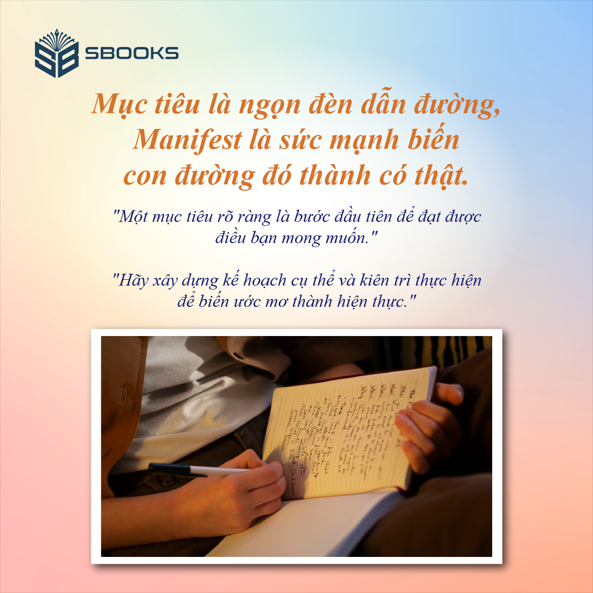 GIỚI THIỆU SẢN PHẨM Manifest – Điều bạn muốn ắt có được                                               Có bao giờ bạn tự hỏi tại sao một số người đã đạt được mọi thứ mình muốn, trong khi số khác dù cố gắng mấy vẫn không thể đạt đến thành công? Bí mật của những người thành công không nằm ở sự chăm chỉ, đó là cách họ kiểm soát tư duy và cảm xúc, điều mà ít ai thực sự biết. Đó là sức mạnh của sự “Manifest” – nghệ thuật thu hút điều mình muốn vào cuộc sống bằng chính sức mạnh từ bên trong. Cuốn sách “Manifest – Điều bạn muốn ắt có được” được viết ra để giúp bạn hiểu rõ và áp dụng quy luật tự nhiên này. Đây không phải là phép màu, mà là những nguyên tắc đã được chứng minh, là sự kết nối giữa tư duy, niềm tin và hành động. Cuốn sách sẽ bắt đầu từ nền tảng, giúp bạn hiểu được bản chất của mong muốn. Từ bước này, bạn sẽ học cách kiểm soát suy nghĩ, loại bỏ những hạn chế tâm lý, xây dựng niềm tin vào chính mình và tạo ra một kế hoạch hành động chi tiết. Không chỉ là lý thuyết, cuốn sách này sẽ hướng dẫn bạn qua các bài tập thực hành, giúp bạn cảm nhận được sức mạnh của từng bước tiến gần đến mục tiêu. Hãy chuẩn bị tinh thần để khám phá một thế giới mới mẻ, nơi bạn sẽ không còn là người quan sát cuộc đời mà sẽ là người kiến tạo vận mệnh của chính mình. —-- Manifest – Mở khóa sức mạnh bên trong                                               “Manifest – Mở khóa sức mạnh bên trong” là lời mời khám phá một hành trình nội tại - một hành trình không cần thiết để tìm kiếm điều gì bên ngoài mà là để thức tỉnh, giải phóng sức mạnh vốn có sẵn trong chính bạn. Cuốn sách này sẽ là kim chỉ nam, hướng dẫn bạn từ những bước đầu tiên của quá trình tự nhận thức đến những phương pháp thực hành giúp bạn biến những giấc mơ, những cơn khát sâu thẳm thành hiện thực. Thông qua các hành trình, bạn sẽ được tiếp cận với những nguyên lý và công cụ mạnh mẽ giúp bạn hiểu sâu hơn về tâm trí, trái tim và tinh thần thần thoại của mình. Đây không chỉ là những lý thuyết mà còn là những trải nghiệm được đúc kết từ những người đã từng bước qua hành trình tương tự.  Hãy xem cuốn sách như một người bạn đồng hành, một thầy thuốc, giúp bạn khám phá, minh họa và biến những điều bạn khao khát trở thành hiện thực. Hành trình này không phải lúc nào cũng dễ dàng, nhưng điều đẹp nhất chính là bạn sẽ không đơn độc. Sức mạnh bên trong bạn chính là người bạn đồng hành đáng tin cậy nhất, là ngọn lửa sẽ soi sáng con đường bạn đi. —-- Manifest – Sức mạnh từ những điều bạn tin                                               Manifest không chỉ là một quy luật bí ẩn của vũ trụ mà còn là một cách sống, một nguồn sức mạnh nội tại giúp chúng ta biến những ước mơ sâu thẳm thành hiện thực. Có bao giờ bạn tự hỏi tại sao một số người dường như luôn gặp may mắn và thành công, trong khi những người khác lại gặp phải những khó khăn, thất bại nối tiếp nhau? Câu trả lời nằm ở cách chúng ta suy nghĩ, cảm nhận và hành động. Manifest dạy chúng ta rằng suy nghĩ của chúng ta có sức mạnh to lớn, rằng những gì chúng ta tập trung vào sẽ phát triển và thu hút về phía mình những trải nghiệm tương ứng. Bạn muốn thu hút gì vào cuộc sống của mình? Tình yêu, tài chính, sức khỏe, hay sự bình yên trong tâm hồn? Tất cả đều có thể đến, nếu bạn biết cách vận dụng sức mạnh của Manifest. Cuốn sách này được chia thành các chương, từng bước đi từ việc khám phá nền tảng của Manifest, cách xác định mục tiêu rõ ràng, củng cố niềm tin, thiết lập các thói quen tích cực đến việc hành động để biến mơ ước thành hiện thực. Bạn sẽ không chỉ học cách thu hút những điều tốt đẹp vào cuộc sống mà còn tìm thấy sự cân bằng, bền vững và niềm vui sâu sắc từ bên trong. Mỗi chương đều cung cấp kiến thức, công cụ thực hành và những bài tập đơn giản để bạn dễ dàng áp dụng vào thực tế, giúp biến những ý tưởng tưởng chừng xa vời thành những bước đi cụ thể trên hành trình đến cuộc sống mà bạn hằng ao ước.