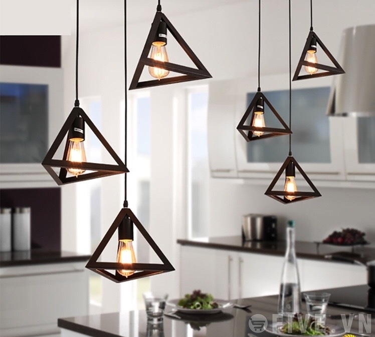 Bộ 3 đèn thả trang trí khối tam giác đa chiều trang trí cao cấp KÈM BÓNG LED Đường kính đèn 25cm. Làm bằng khung sắt sơn tĩnh điện. Phù hợp cho