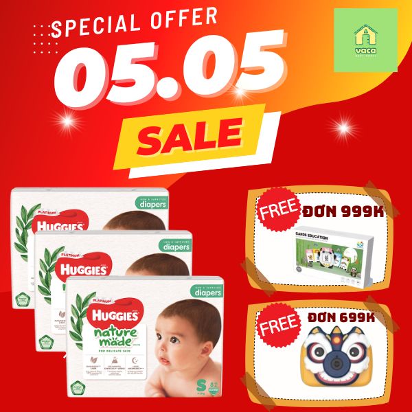 - Tã dán cao cấp Huggies Platinum Nature Made size S (4-8kg): 82 miếng/túi