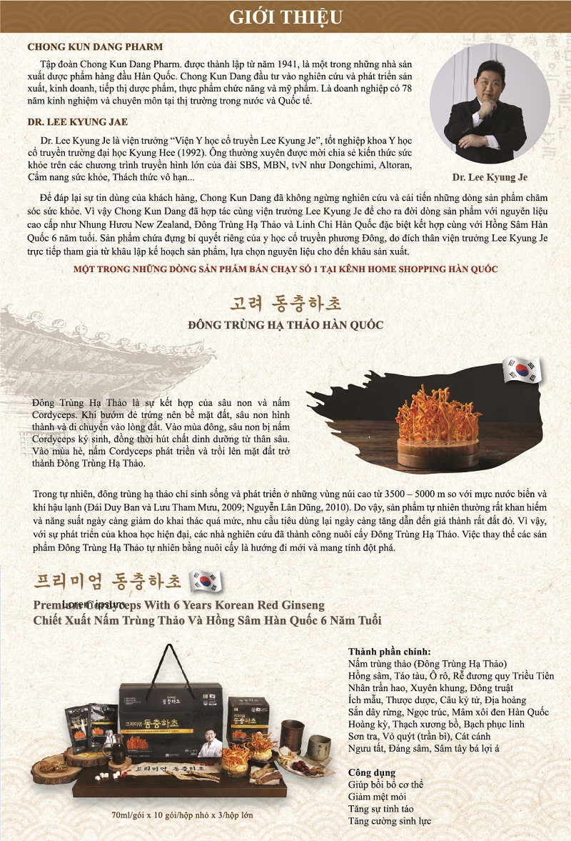 - 21 loại thảo dược +++ Tên sản phẩm: Chiết Xuất Nấm Trùng Thảo & Hồng Sâm Hàn Quốc 6 Năm Tuổi Premium Cordyceps Withs 6 Years Korean Red Ginseng