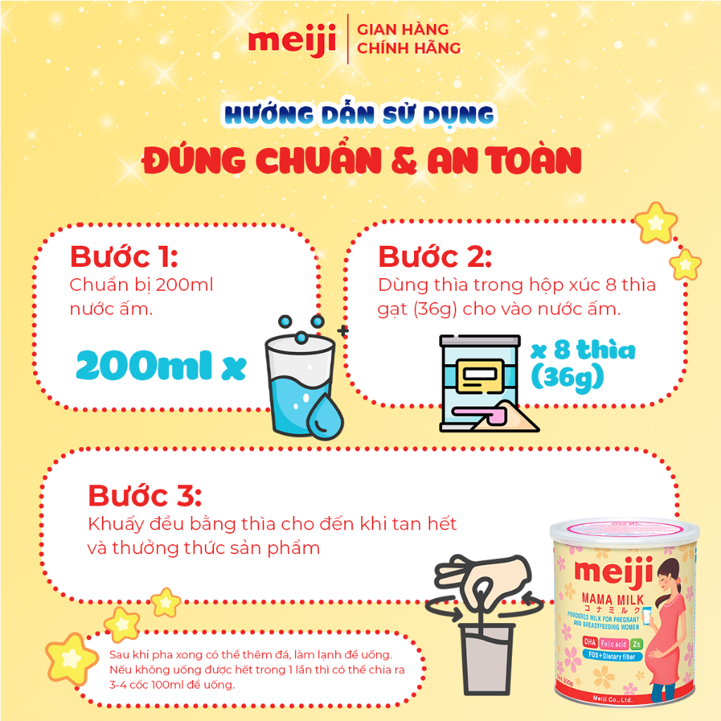 - Meiji Mama Milk hỗ trợ trên 30% lượng khuyến nghị của 13 khoáng chất và Vitamin cần thiết khi mang thai và cho con bú. theo quy định của FAO/WHO.