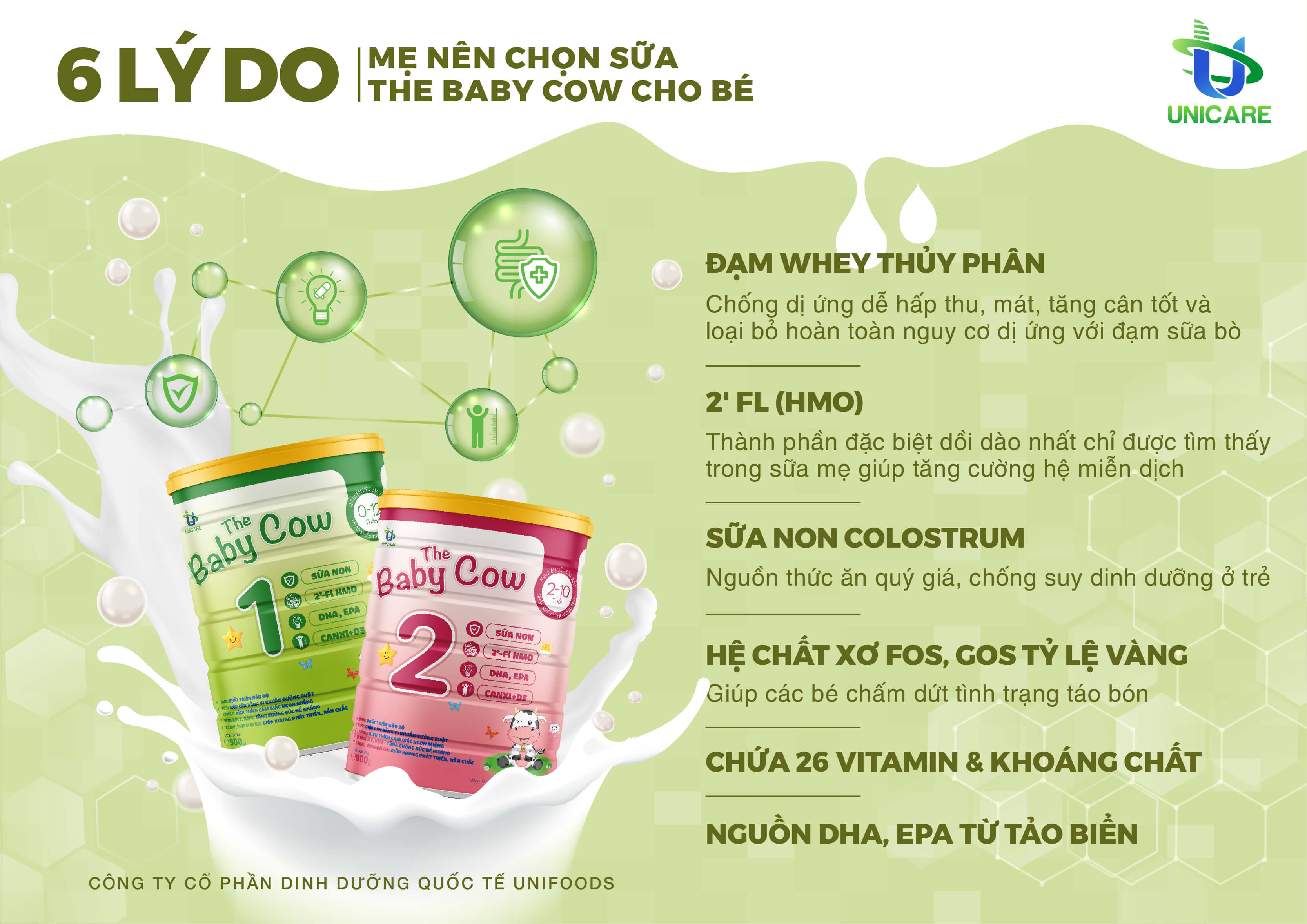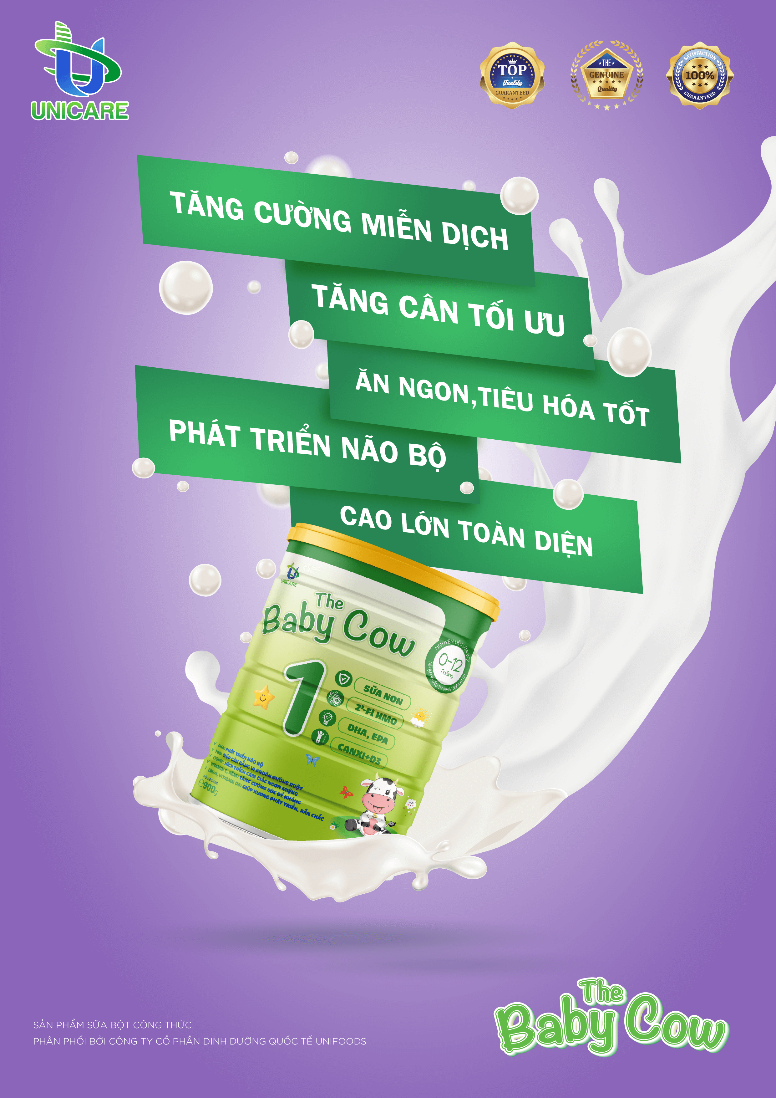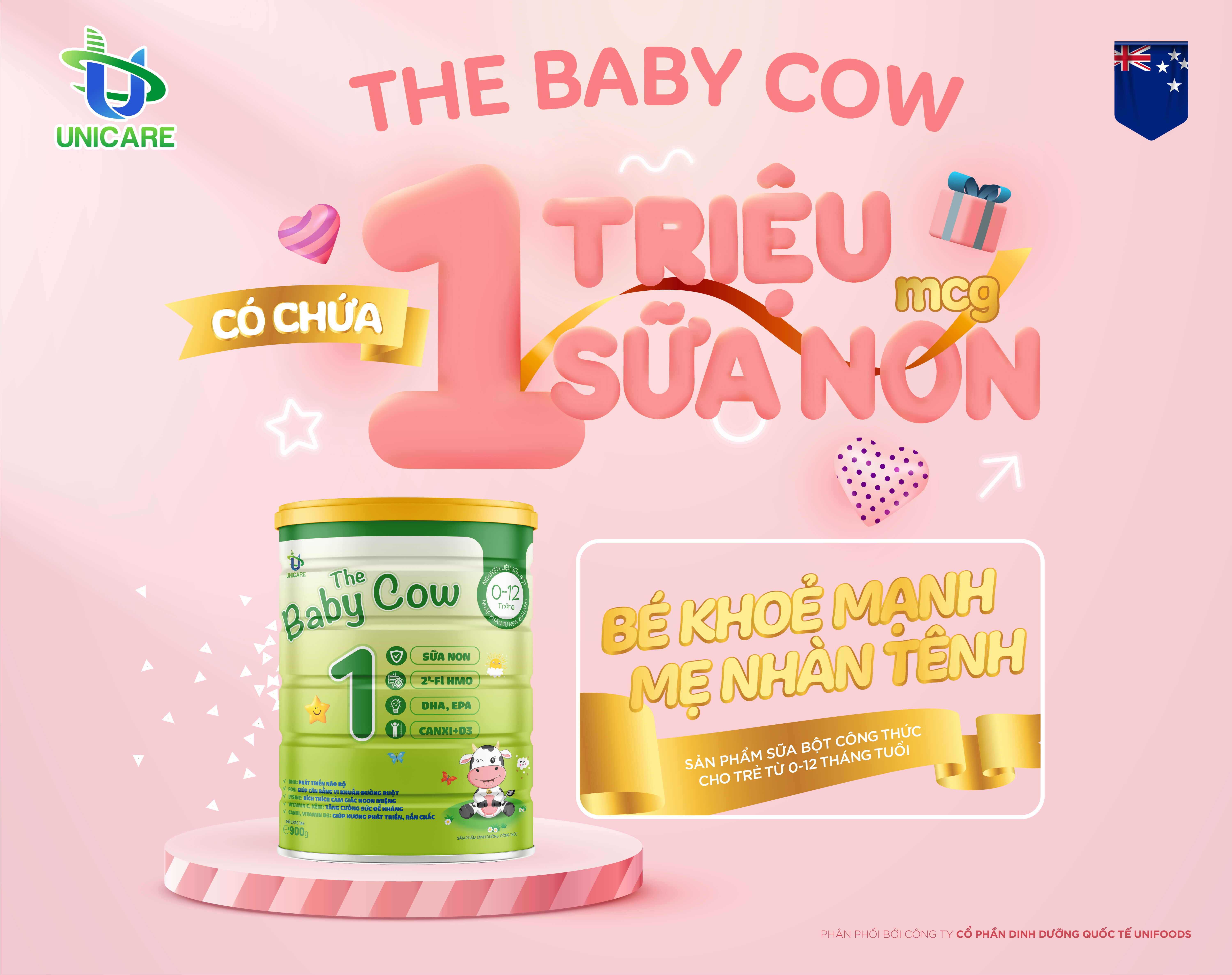 The Baby Cow 1 một sản phẩm từ Công ty cổ phần dinh dưỡng quốc tế Unifoods. Sản phẩm được FDA - Cục quản lý Thực phẩm và dược phẩm Hoa Kỳ chứng nhận đủ điều kiện an toàn.