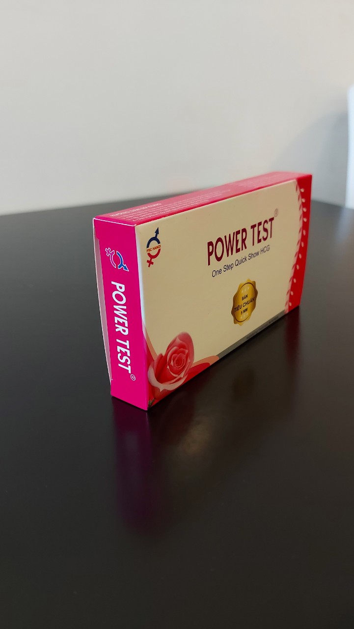 Tên sản phẩm: Que thử thai PowerTest Kích thước test: rộng 5mm Tính năng: Phát hiện thai sớm sau 6 -9 ngày trứng rụng ƯU ĐIỂM: Phát hiện thai sớm sau 6 -9 ngày