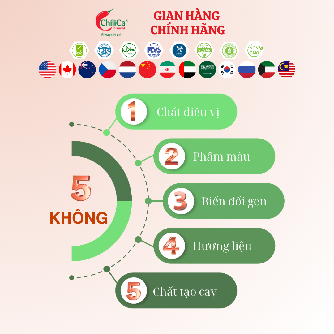 - Ớt lên men, giữ nguyên hương vị ớt tươi.