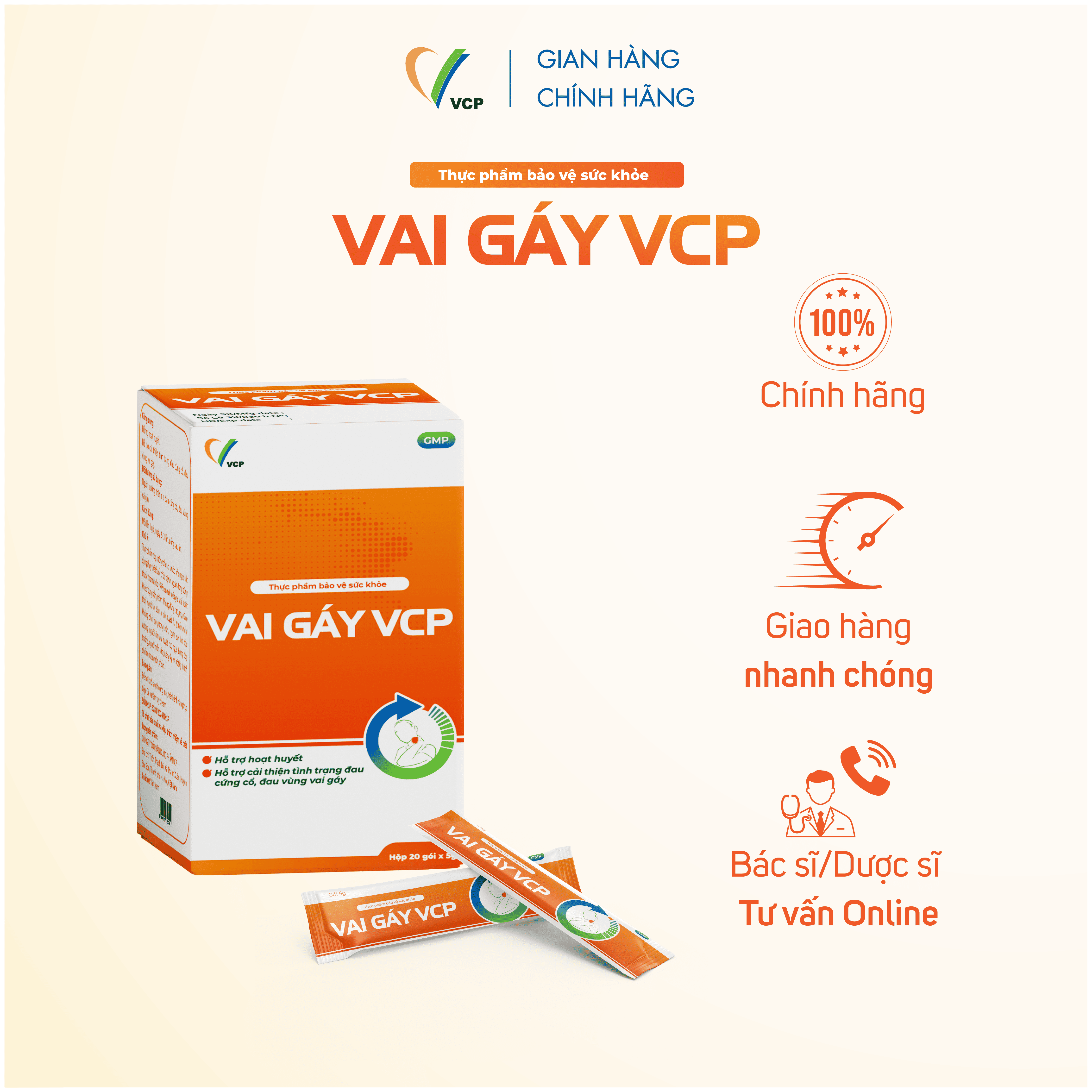 ✨[COMBO 3] TPBVSK Vai Gáy VCP - Hỗ trợ cải thiện tình trạng đau cứng cổ, đau vùng vai gáy - Hộp 20 gói