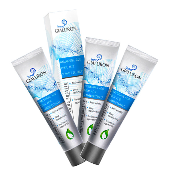 Combo 3 Tuýp Kem Chống Lão Hóa Và Xóa Mờ Nếp Nhăn INNOGIALURON 40ml giảm giá đến 67% Thành phần Hyaluronic Acid có khả năng hydrat hóa (cấp nước) chuyên sâu cho da, giúp xóa nếp nhăn trên mặt. Hình thức sửa đổi công nghệ sinh học của axit folic có tác dụng làm trẻ hoá, giúp xóa nếp nhăn và bảo vệ da khỏi các yếu tố của môi trường gây stress da. Giàu polysaccharides trích fucus và tảo bẹ có tác dụng làm dịu và chống oxy hóa