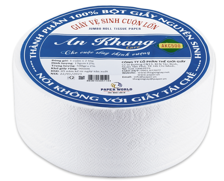 - Tên sản phẩm: Giấy vệ sinh cuộn lớn AN KHANG Caro AKC500 hai lớp